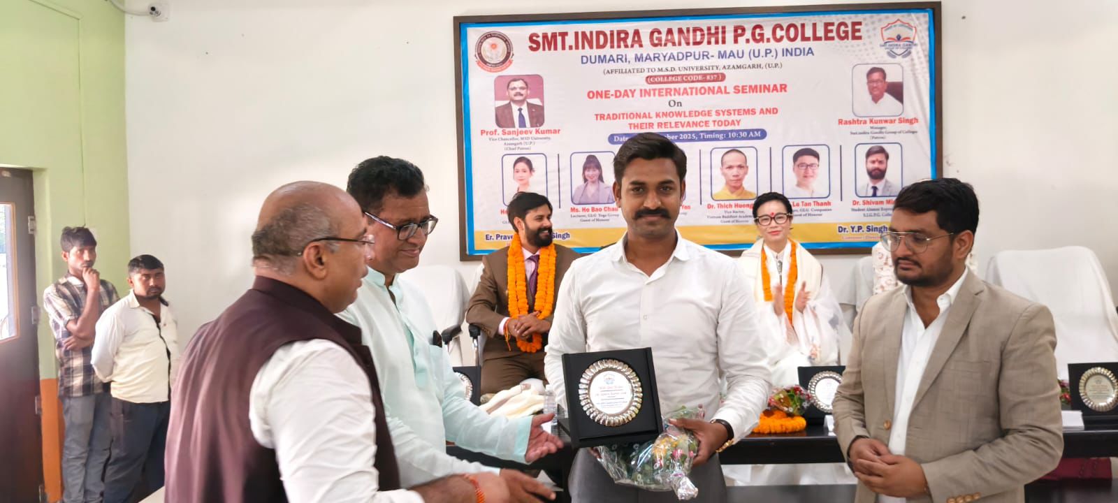 मधुबन (मऊ)। स्थानीय तहसील क्षेत्र के डुमरी मर्यादपुर स्थित पीजी कॉलेज में शुक्रवार को “ट्रेडिशनल नॉलेज सिस्टम्स एंड उनकी प्रासंगिकता आज” विषय पर अंतर्राष्ट्रीय संगोष्ठी का आयोजन किया गया। इस संगोष्ठी का उद्देश्य भारतीय परंपरागत ज्ञान की समृद्ध विरासत और उसकी वैज्ञानिकता को उजागर करना था।कार्यक्रम में उपस्थित अतिथियों ने परंपरागत ज्ञान की आज की दुनिया में प्रासंगिकता पर जोर दिया।