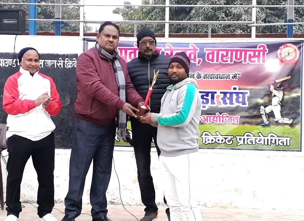 वाराणसी ; मंडल रेल प्रबंधक रामाश्रय पाण्डेय के निर्देशन में पूर्वोत्तर रेलवे वाराणसी मंडल के क्रीड़ा स्थल में चल रही अंतर विभागीय टी-20 क्रिकेट प्रतियोगिता में आज विद्युत टीआरडी और इंजीनियरिंग विभाग के बीच मैच खेला गया। इंजीनियरिंग विभाग की टीम पहले बैटिंग करते हुए 19.1 ओवर में 138 रन बनाकर आल आउट हो गई। इंजीनियरिंग विभाग की तरफ से सचिन ने 17 बॉल पर 3 चौकों और दो छक्कों की मदद से 33 रन, अभिषेक ने 26 बॉल पर 3 चौकों और दो छक्कों की मदद से 33 रन और अजीत ने 19 रन बनाए अतिरिक्त रनों की संख्या 22 थी । विद्युत टीआरडी की तरफ से वरुण राय ने 4 ओवर में 26 रन देकर तीन विकेट लिए और भानु को एक विकेट प्राप्त हुआ । 139 रनों के लक्ष्य का पीछा करते हुए विद्युत टीआरडी की टीम ने 18.4 ओवर में 6 विकेट के नुकसान पर 139 रन बनाकर 4 विकेट से मैच जीतकर सेमीफाइनल में प्रवेश कर लिया । विद्युत टीआरडी की तरफ से भानु ने 27 बॉल पर तीन चौकों और तीन छक्कों की मदद से 50 रनों की शानदार पारी खेली और वरुण ने 16 गेंद पर 1 चौके और एक छक्के की मदद से 26 रन बनाए । 27 गेंद पर 50 रन की पारी खेलकर मैच जिताने वाले और 1 विकेट लेने वाले विद्युत टीआरडी विभाग के भानु को पूर्वोत्तर रेलवे के भूतपूर्व टीम मैनेजर मो इकबाल आजम खान के द्वारा मैन ऑफ द मैच का पुरस्कार दिया गया ।