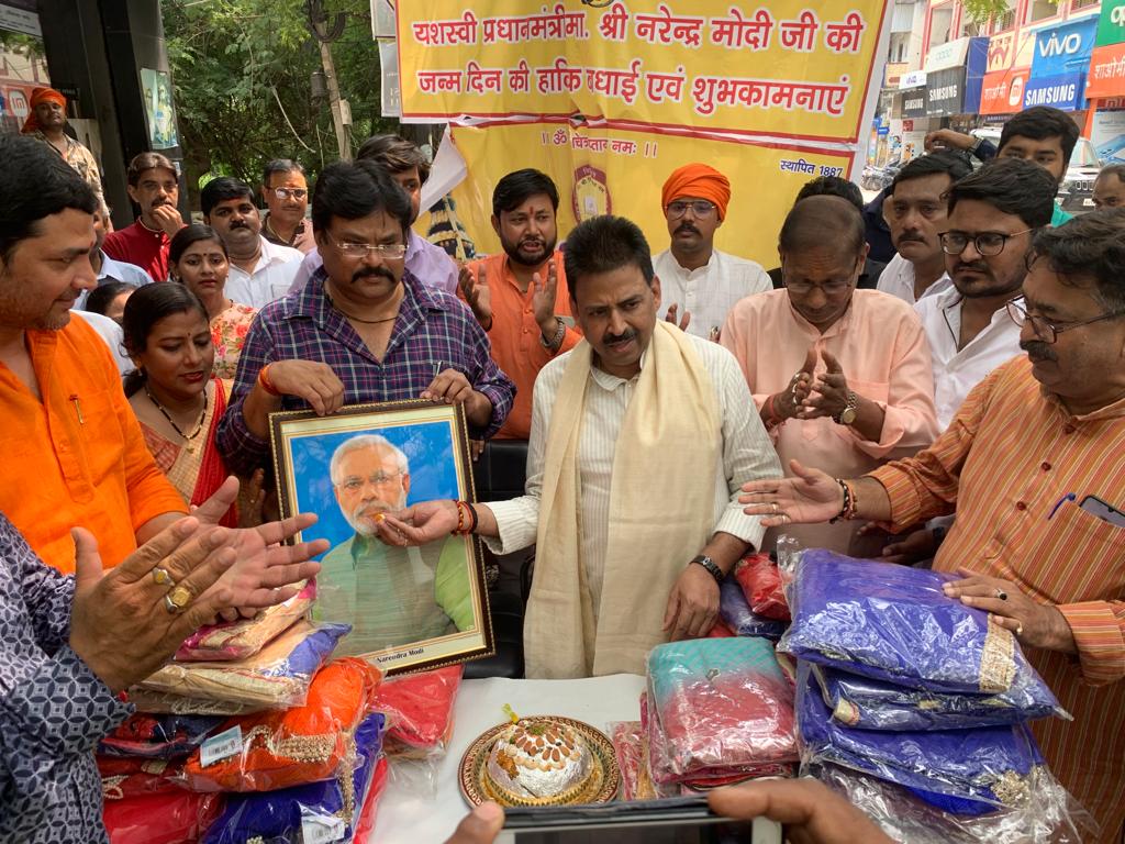 वाराणसी| अखिल भारतीय कायस्थ महासभा, वाराणसी व साईं फाउंडेशन की ओर से आज यशस्वी प्रधानमंत्री नरेन्द्र मोदी का 72 वा जन्म दिन हर्षोल्लास के साथ मनाया गया आज मिक्की हाउस कटरा सुविधा साड़ी के बगल में अर्दली बाजार वाराणसी में दोपहर 12:30 बजे 72 वें जन्मदिन पर सेवा बस्ती की 72 महिलाओं को साड़ी वितरण किया गया इस कार्यक्रम के मुख्य अतिथि क्षेत्रीय अध्यक्ष महेश श्रीवास्तव थे* उन्होंने कहा कि आज दो शिल्पकारों का जन्म दिवस है एक भगवान श्री विश्वकर्मा जिसने सृष्टि की रचना की और एक आज जो नए भारत का नव निर्माण कर रहे हैं आज देश के प्रधान सेवक एक प्रेरणादायक नेता और प्रभावशाली वक्ता जिन्होंने राष्ट्र की सेवा में वर्षों बिता दिए एक प्रधानमंत्री के रूप में विकास के एक युग नए युग का सूत्रपात किया और विश्व पटल पर भारत के मान को बढ़ाया ऐसे जननायक युगपुरुष आदरणीय यशस्वी नरेंद्र भाई दामोदरदास मोदी को जन्मदिन की असीम मंगल कामनाएं