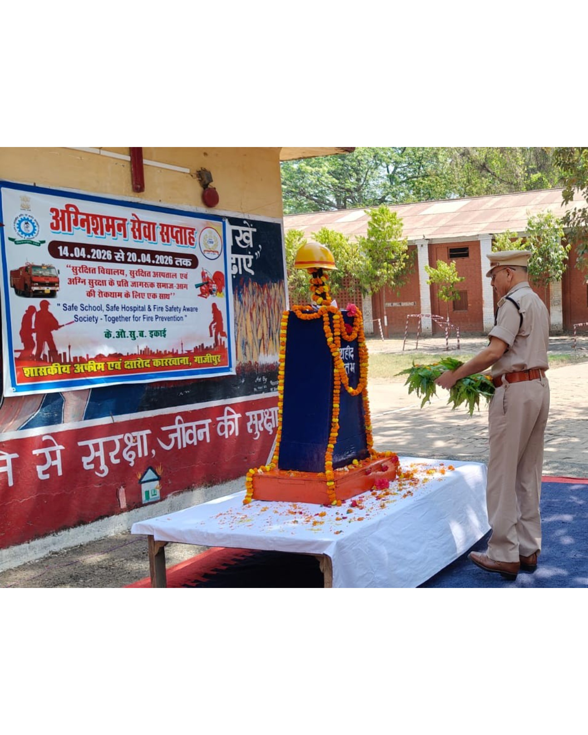 गाजीपुर (जयदेश)। शहर के अफीम फैक्ट्री स्थित केंद्रीय औद्योगिक सुरक्षा बल के फायर स्टेशन में मंगलवार को अग्निशमन सेवा दिवस पर अग्निशमन सेवा सप्ताह का शुभारंभ किया गया। केऔसुब इकाई अफीम फैक्ट्री के सहायक कमाण्डेट संजीव कुमार चौहान ने शहीद अग्निशमन कर्मियों को श्रद्धांजलि अर्पित की।
