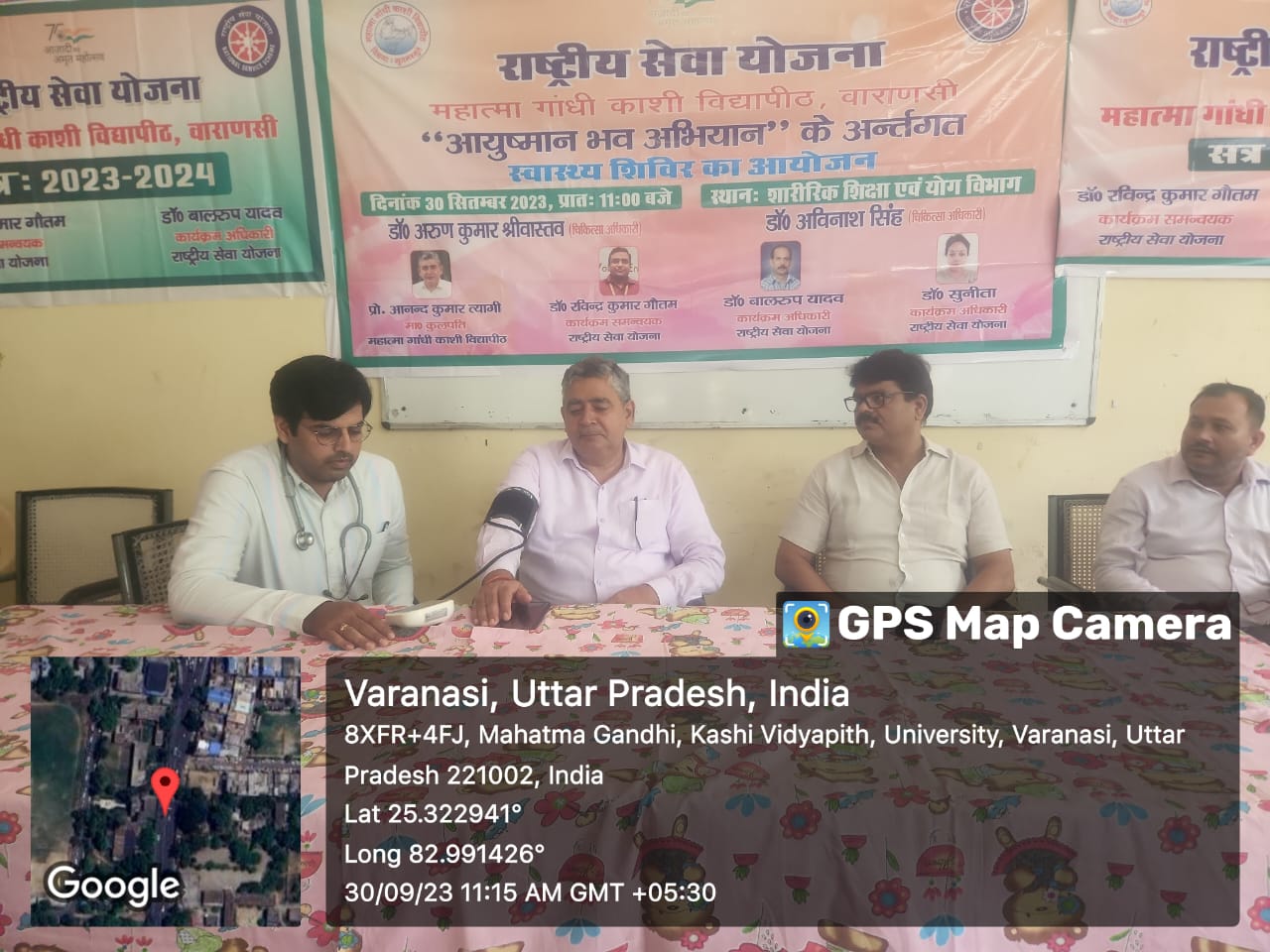वाराणसी: राष्ट्रीय सेवा योजना, महात्मा गांधी काशी विद्यापीठ, वाराणसी में "आयुष्मान भव योजना" के तहत स्वास्थ्य शिविर का अयोजन किया गया। राष्ट्रीय सेवा योजना के समन्वयक डॉ रविन्द्र कुमार गौतम ने अतिथियों का स्वागत किया। स्वास्थ्य शिविर के मुख्य अतिथि कुलपति प्रो आनन्द कुमार त्यागी ने कहा - आज बच्चे, युवा, असमय मृत्यु की चपेट में आ रहें। करोना के बाद से हार्ट अटैक से होने वाली मृत्यु दर में बहुत तेजी से बढ़ोतरी हुई है। विद्यापीठ के सभी अध्यापकगण, कर्मचारी से अनुरोध है कि आयुष्मान कार्ड, स्वास्थ्य बीमा, करा ले। क्योंकि बीमार पड़ने पर किसी के पास इतने पैसे नहीं होते कि इलाज करा सकें। तो इस योजना से इलाज कराने में सुविधा मिलेगी, तथा समय समय पर जांच कराते रहें।प्राकृतिक चिकित्सा और योग को अपनाएं प्राकृतिक जीवन की ओर बढ़े तभी पूर्ण स्वास्थ्य प्राप्त हो सकेगा। विशिष्ट अतिथि वित्त अधिकारी संतोष कुमार शर्मा ने कहा कि आपने खान - पान और दिनचर्या सुव्यवस्थित करें। संकायाध्यक्ष/विभागाध्यक्ष शिक्षा संकाय एवं शारिरिक शिक्षा एवं योग विभाग के प्रो. सुशील कुमार गौतम ने स्वास्थ्य के बारे में बताया कि शारिरिक स्वास्थ्य के साथ मानसिक स्वास्थ्य को स्वस्थ रखने के लिए हर व्यक्ति को प्रति दिन 40 मिनट व्यायाम करना चाहिए।
