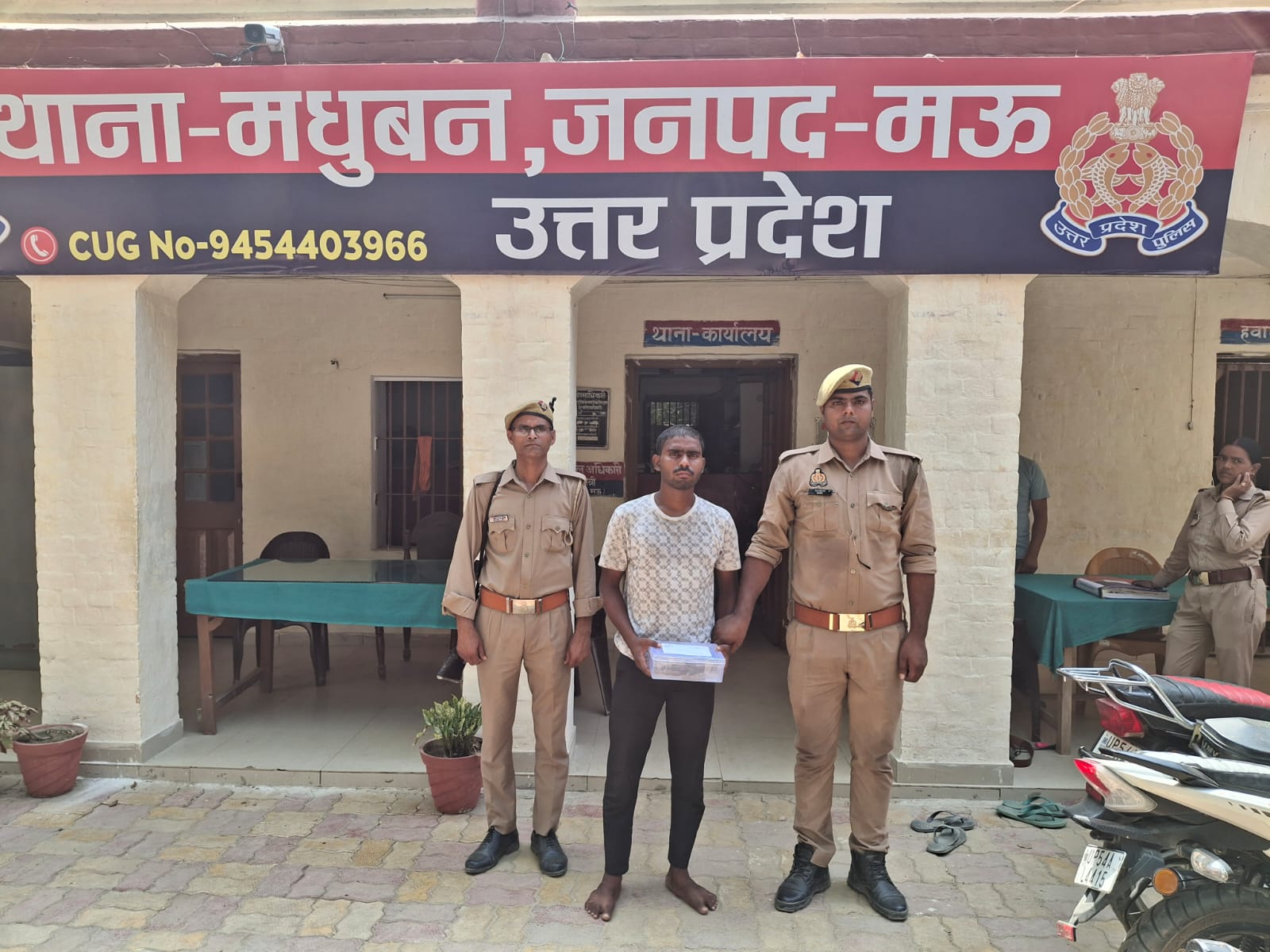 मधुबन थाना प्रभारी के नेतृत्व में उप निरीक्षक राममिलन यादव व पुलिस टीम क्षेत्र में गश्त कर रही थी, तभी सूचना मिली कि एक संदिग्ध बाइक सवार पुलिया के पास खड़ा है। टीम ने मौके पर पहुंचकर युवक को घेराबंदी कर दबोच लिया।