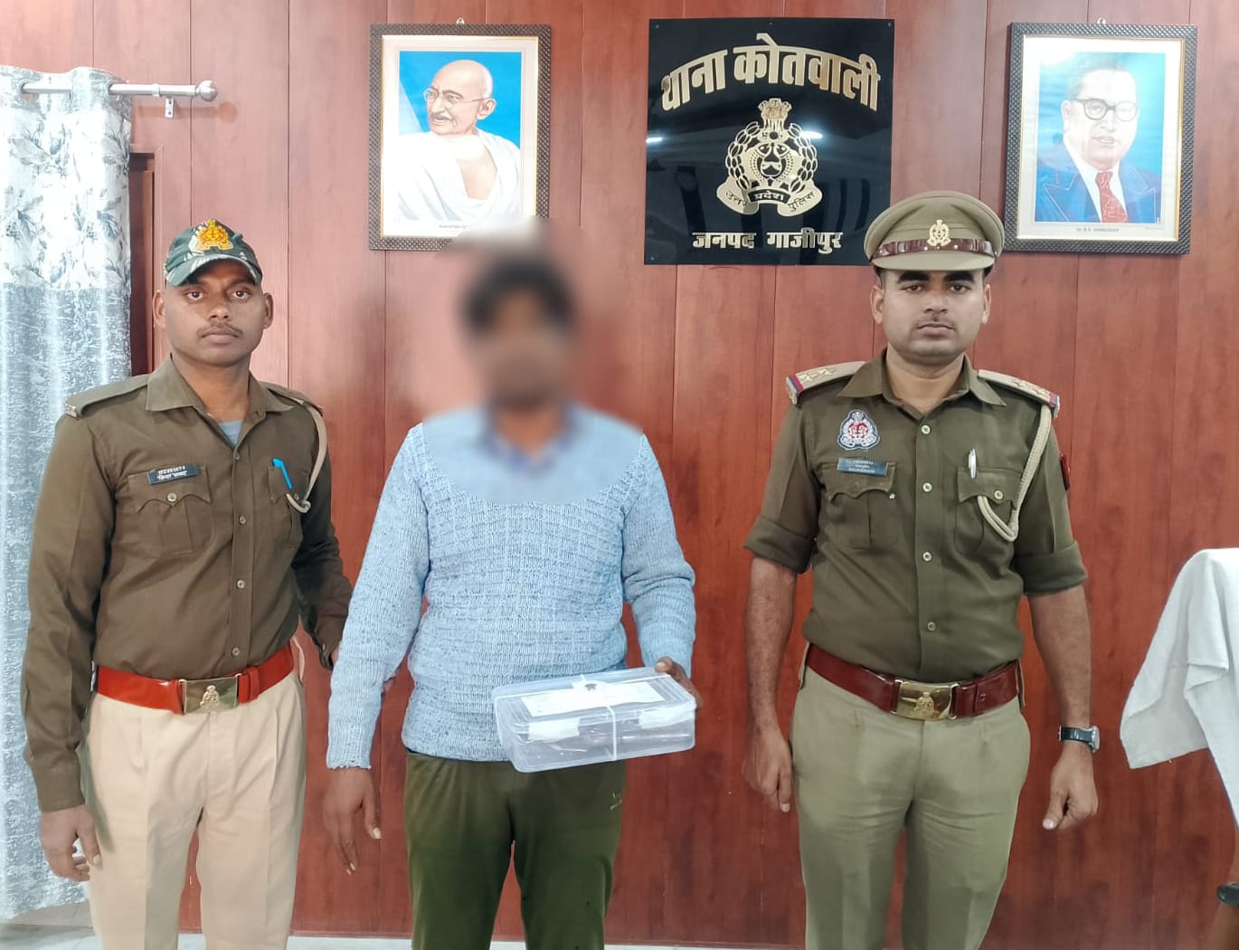 गाजीपुर। अपराधियों के विरुद्ध चलाए जा रहे विशेष अभियान के तहत कोतवाली पुलिस ने एक अभियुक्त को गिरफ्तार कर उसके कब्जे से .315 बोर का एक तमंचा तथा एक जिंदा कारतूस बरामद किया है।