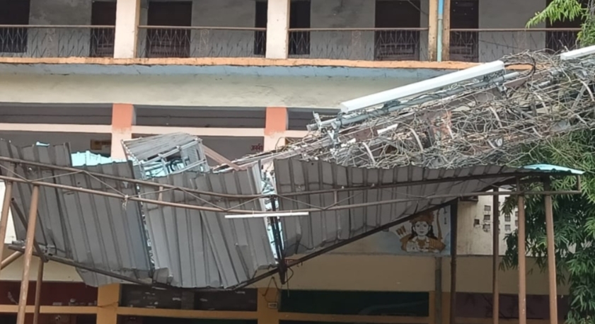 स्कूल परिसर में गिरा मोबाइल टावर
