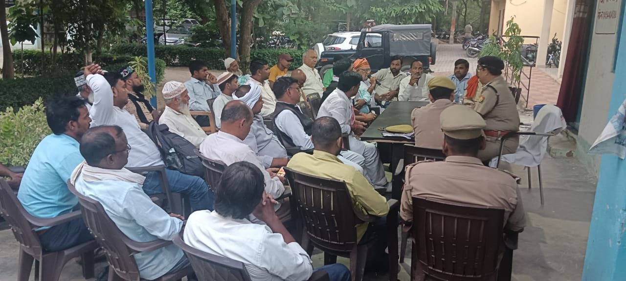 आगामी त्यौहारों को लेकर सहायक पुलिस आयुक्त राजातालाब द्वारा थाना जंसा पर क्षेत्र के धर्मगुरुओं/गणमान्य व्यक्तियों के साथ की गयी पीस कमेटी की बैठक