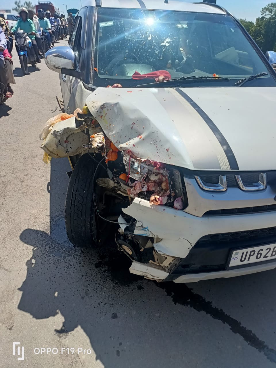 सारनाथ (वाराणसी) स्थानीय थाना अंतर्गत आशापुर चौराहे के ऊपर बने रेलवे ओवर ब्रिज पर आज सुबह एक कार एवं बाइक में जबरदस्त टक्कर हुई, बाइक सवार घायल हुआ।