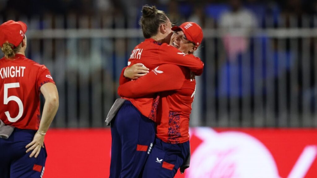 सोफी एकलेस्टन की बेहतरीन गेंदबाजी (15 रन देकर दो विकेट) और नैटली सिवर ब्रंट (नाबाद 48) व डेनियल वायट (43) के बीच तीसरे विकेट के लिए 55 गेंदों पर 64 रन की साझेदारी की बदौलत इंग्लैंड ने महिला टी-20 विश्व कप के ग्रुप बी के एक महत्वपूर्ण मुकाबले में दक्षिण अफ्रीका को सात विकेट से हराकर अपनी लगातार दूसरी जीत हासिल की।