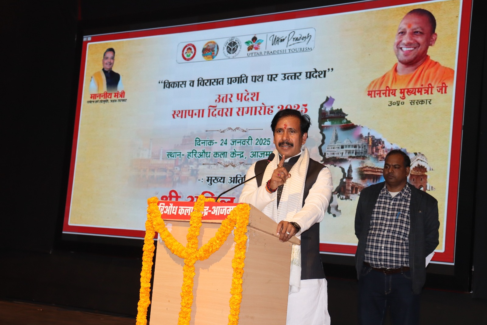 हरिऔध कला केंद्र में प्रभारी मंत्री ने सूचना एवं जनसंपर्क विभाग द्वारा आयोजित “विकास व विरासत प्रगति पथ पर उत्तर प्रदेश” विषयक प्रदर्शनी का फीता काटकर उद्घाटन किया और विभिन्न विभागों द्वारा लगाई गई प्रदर्शनियों का अवलोकन किया। अपने संबोधन में मंत्री ने उत्तर प्रदेश दिवस की शुभकामनाएं देते हुए कहा कि पहले यह दिवस अन्य राज्यों में मनाया जाता था, लेकिन अब यह हमारे प्रदेश में मनाया जा रहा है, जो गर्व का विषय है।