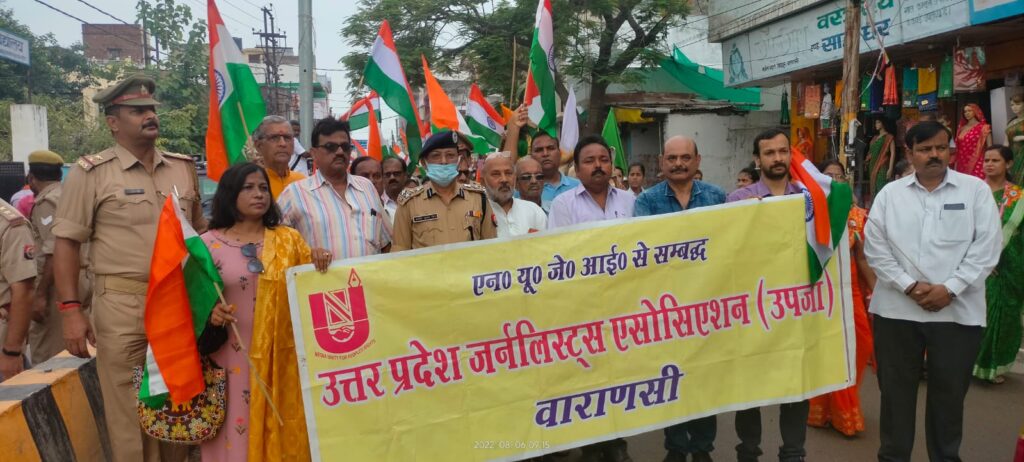 वाराणसी| भारत की आजादी के 75 वीं वर्षगांठ पर पूरे देश में मनाए जा रहे कार्यक्रम के अंतर्गत युपी जर्नलिस्ट एसोसिएशन वाराणसी इकाई (उपजा) एवं राघव राम वर्मा बालिका इंटर कॉलेज की संयुक्त तत्वाधान में आज शिवपुर स्थित कार्यालय से तिरंगा यात्रा रैली निकाली गई।