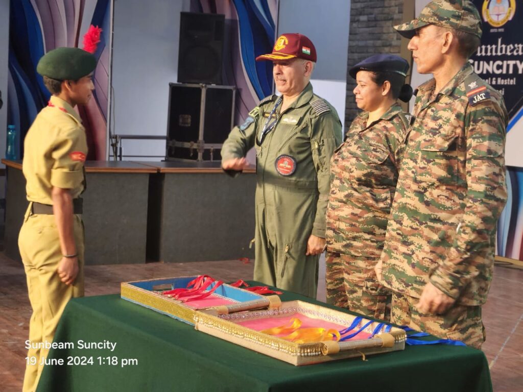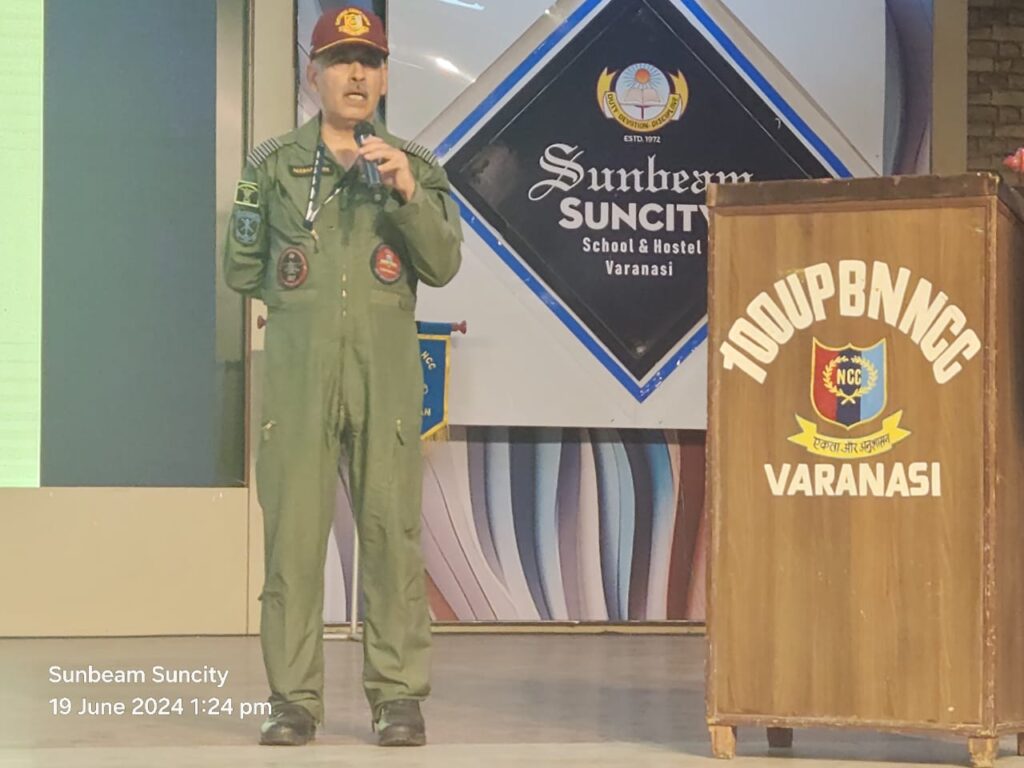 उपरोक्त बातें बुधवार को सनबीम, सनसिटी करसड़ा में चल रहे सौवीं बटालियन एनसीसी के प्रशिक्षण शिविर के अंतर्गत कैडेटो को संबोधित करते हुए वाराणसी बी ग्रुप के ग्रुप कमांडर, ग्रुप कैप्टन नीरज अंबा ने कहीं।आगमन के साथ ही ग्रुप कमांडर, ग्रुप कैप्टन नीरज अंबा ने कैंप कमांडेंट लेफ्टिनेंट कर्नल ईला वर्मा के साथ संपूर्ण शिविर का निरीक्षण किया। आपने शिविर के अनुशासन एवं रखरखाव की भूरि भूरि प्रशंसा की। साथ ही ड्रील एवं सांस्कृतिक कार्यक्रमों में प्रथम, द्वितीय , तृतीय स्थान प्राप्त कैडेटों को पुरस्कृत भी किया।