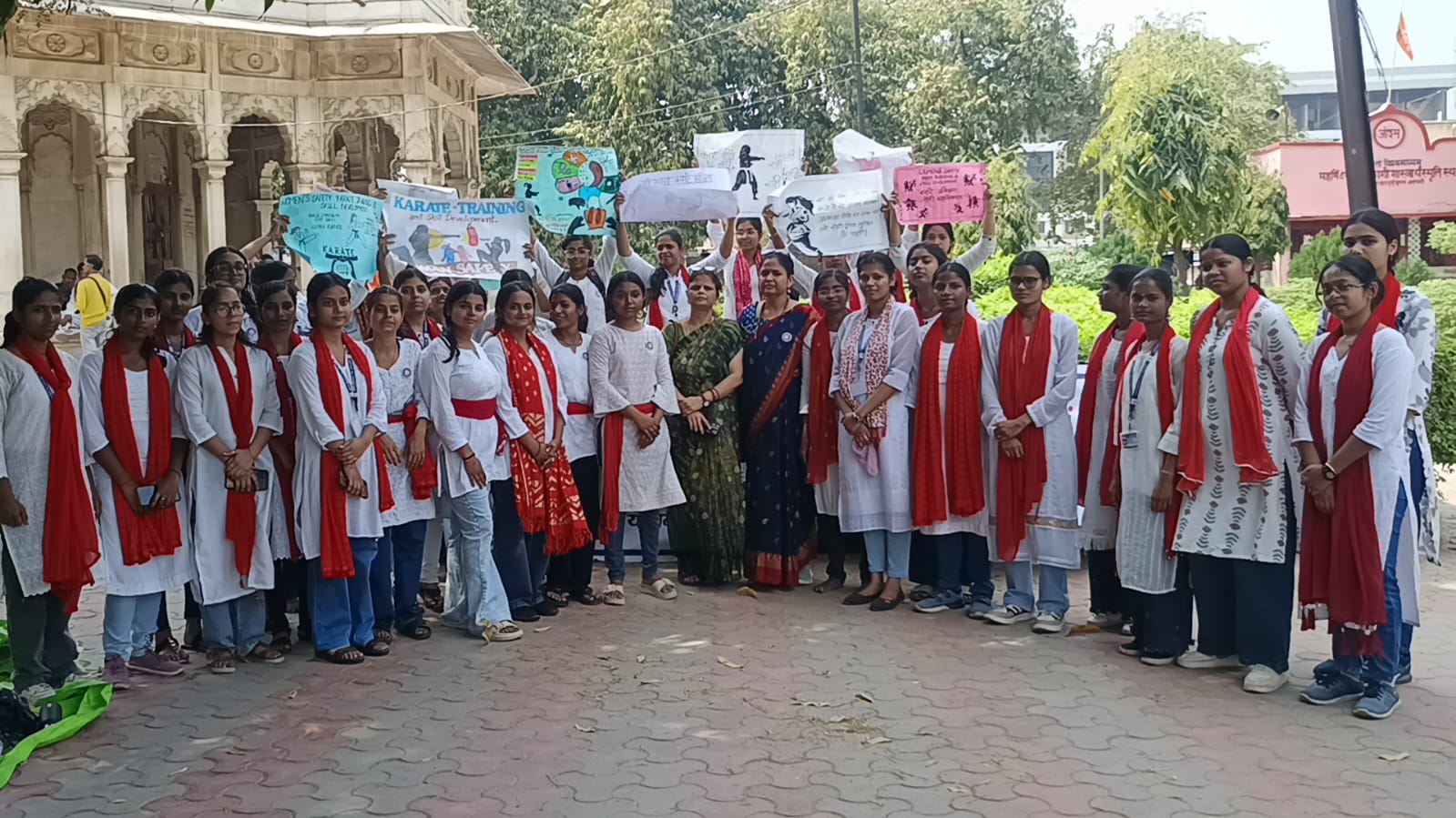 वाराणसी। आर्य महिला पी.जी. कॉलेज की राष्ट्रीय सेवा योजना की इकाई ‘ए’ और ‘डी’ द्वारा आयोजित सप्त दिवसीय विशेष शिविर का तीसरा दिन विभिन्न जागरूकता और प्रशिक्षण कार्यक्रमों के साथ संपन्न हुआ। इकाई ‘ए’ की गतिविधियां दुर्गाकुंड मलिन बस्ती में तथा इकाई ‘डी’ का कार्यक्रम भेलूपुर स्थित बनकटी हनुमान मंदिर परिसर में आयोजित किया गया। इस दौरान “नारी सुरक्षा–कराटे प्रशिक्षण एवं कौशल विकास अभियान” विषय पर स्वयंसेविकाओं को सशक्त बनाने के उद्देश्य से कई कार्यक्रम आयोजित किए गए।