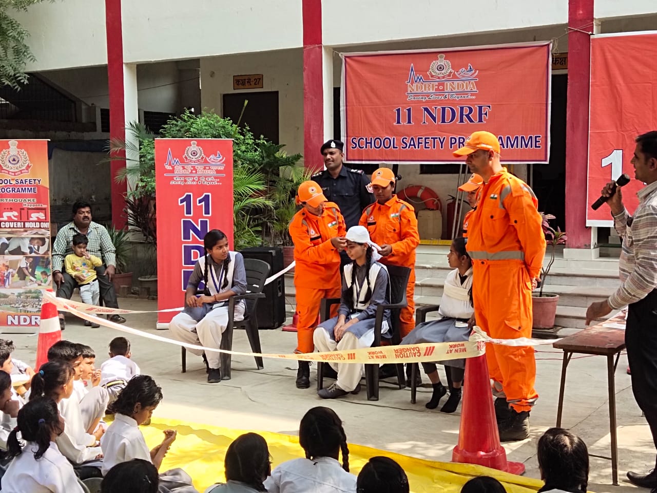 वाराणसी: आपदा जोखिम न्यूनीकरण और प्रबंधन योजना के तहत कमान्डेंट मनोज कुमार शर्मा के दिशा-निर्देशन में 11 एनडीआरएफ वाराणसी की टीमें विभिन्न संस्थानों और हितधारकों को सशक्त बनाने के लिए एनडीआरएफ की टीमें आपदा से बचाव एवं प्रबंधन हेतु वृहद पैमाने पर मॉक अभ्यास, क्षमता निर्माण कार्यक्रम व जन जागरुकता के अभियान चला रही है तथा शिक्षण संस्थानों में आपदा से बचाव हेतु स्कूलों में स्कूल सुरक्षा एवं प्रशिक्षण कार्यक्रम आयोजित कर रही है। उसी कड़ी में आज जग नारायण सिंह इंटर कॉलेज, हरपाल पुर लोहता, जिला-वाराणसी (उत्तर प्रदेश) मे एनडीआरएफ के प्रशिक्षित एवं अनुभवी टीम द्वारा भूकम्प से बचाव, बांढ़ में बचाव के तरीके, फायर सेफ्टी, सीपीआर, गले में फंसी बाहरी वस्तु के निकालने के तरीके, शारीरिक चोटों का अस्पताल पूर्व उपचार, तात्कालिक स्ट्रेचर बनाना, लिफ्टिंग और मूविंग के तरीके, इम्प्रोवाइज्ड फ्लोटिंग डिवाइस (राफ्ट) बनाना, स्कूल सुरक्षा ड्रिल आदि विभिन्न विषयों पर प्रशिक्षण प्रदान किया गया।