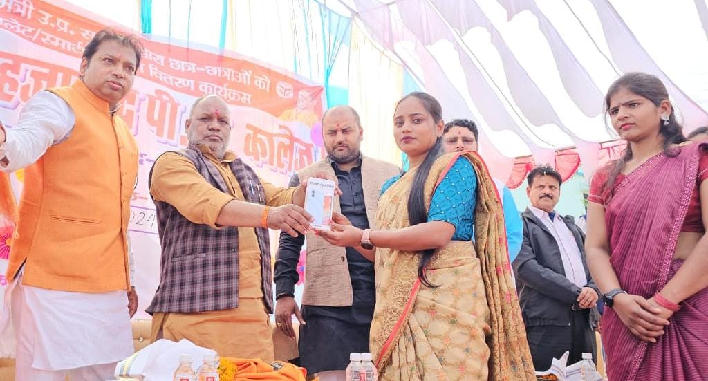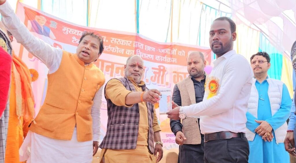 एमएलसी/भाजपा जिलाध्यक्ष हंसराज विश्वकर्मा ने छात्र-छात्राओं को बांटे निःशुल्क स्मार्टफोन