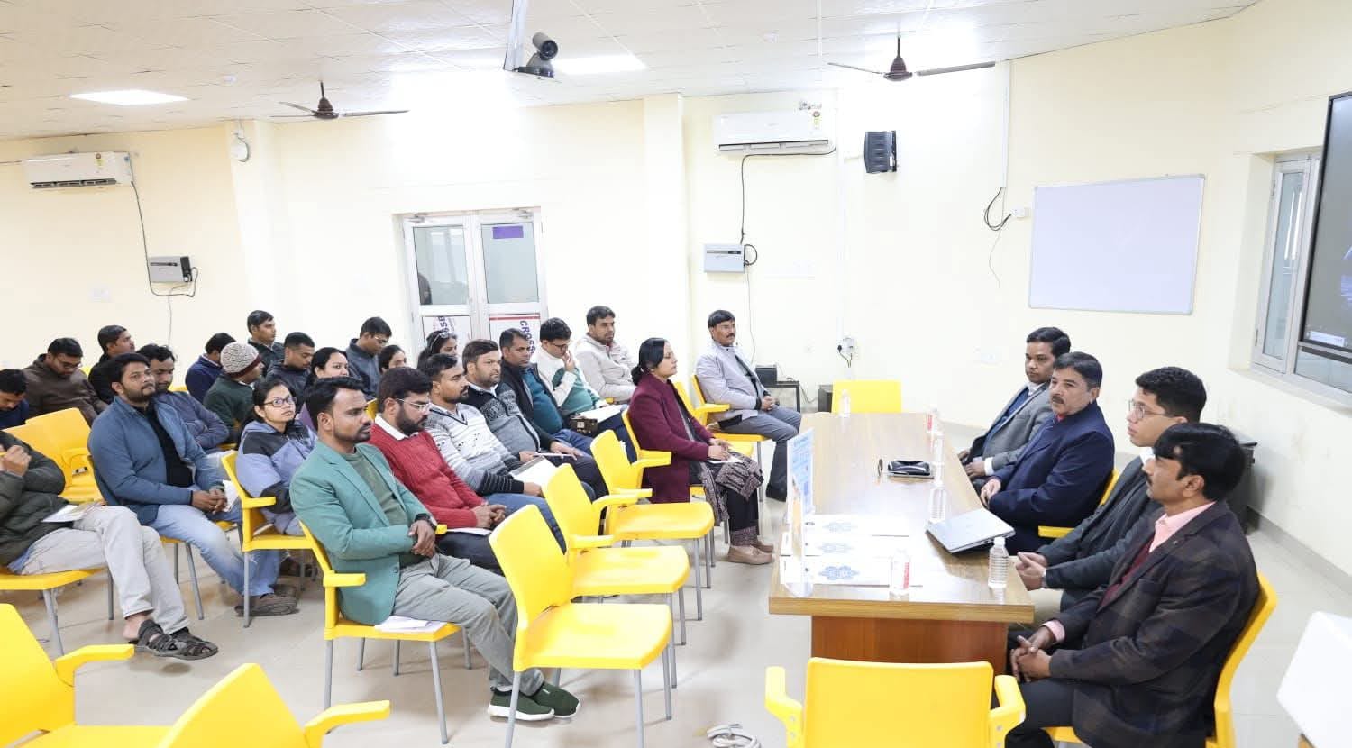 तत्पश्चात प्रो० बी. के. शर्मा ने अपने मार्गदर्शक संबोधन में विद्यार्थियों को तकनीकी ज्ञान के साथ-साथ व्यावहारिक दृष्टिकोण अपनाने का संदेश दिया। उन्होंने कहा कि किसी भी नवाचार की वास्तविक सफलता तब सुनिश्चित होती है जब वह समाज एवं उद्योग की समस्याओं का प्रभावी समाधान प्रस्तुत करे। उन्होंने विद्यार्थियों को अपने विचारों को पेटेंट योग्य बनाने, बौद्धिक संपदा अधिकारों के महत्व को समझने तथा अपने नवाचार को व्यावसायिक रूप देने की दिशा में सतत प्रयास करने के लिए मार्गदर्शन प्रदान किया।