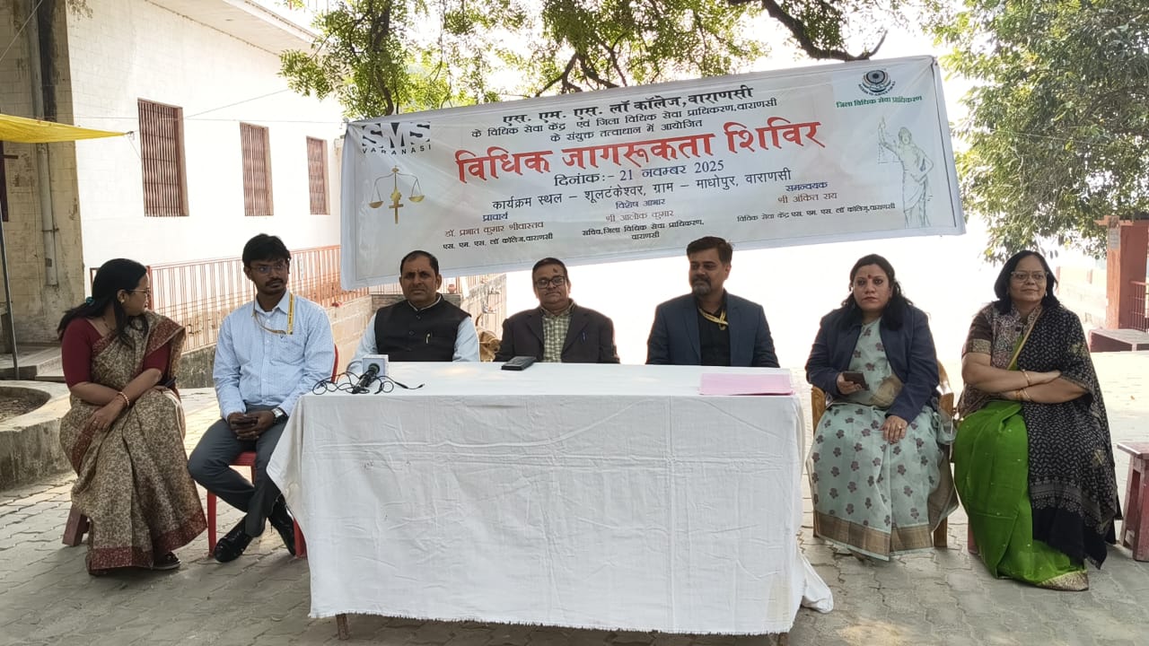 वाराणसी। एसएमएस लॉ कॉलेज, वाराणसी ने जिला विधिक सेवा प्राधिकरण के सहयोग से शूलटंकेश्वर पोस्ट–मधोपुर, वाराणसी में विधिक जागरूकता शिविर का सफल आयोजन किया।