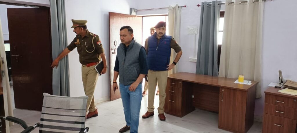 प्रतापगढ़। जिले के तेजतर्रार पुलिस कप्तान सतपाल अंतिल एवं अपर पुलिस अधीक्षक पूर्वी दुर्गेश कुमार सिंह ने सोमवार को पुलिस लाइन परिषद में चुनाव सेल का निरीक्षण करते हुए अभिलेखों को चेक किया और साफ सफाई एवं ऑफिस में मौजूद कर्मचारियों को आवश्यक दिशा निर्देश देते नजर आए।