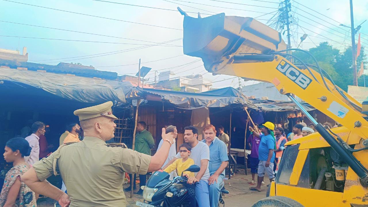 ओबरा में अतिक्रमण हटाने का बुलडोजर अभियान, बाजार हुआ अतिक्रमण मुक्त