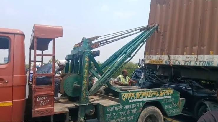 कंटेनर में घुसी तेज रफ्तार कार, मां-बेटी समेत चार की मौत
