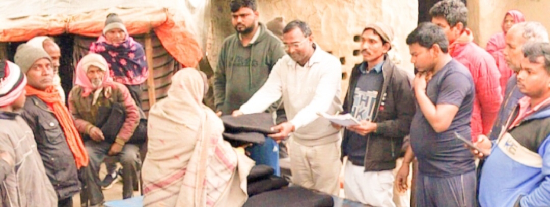 कड़ाके की ठंड में समाजसेवियों ने जरुरतमंदों में बांटे कंबल