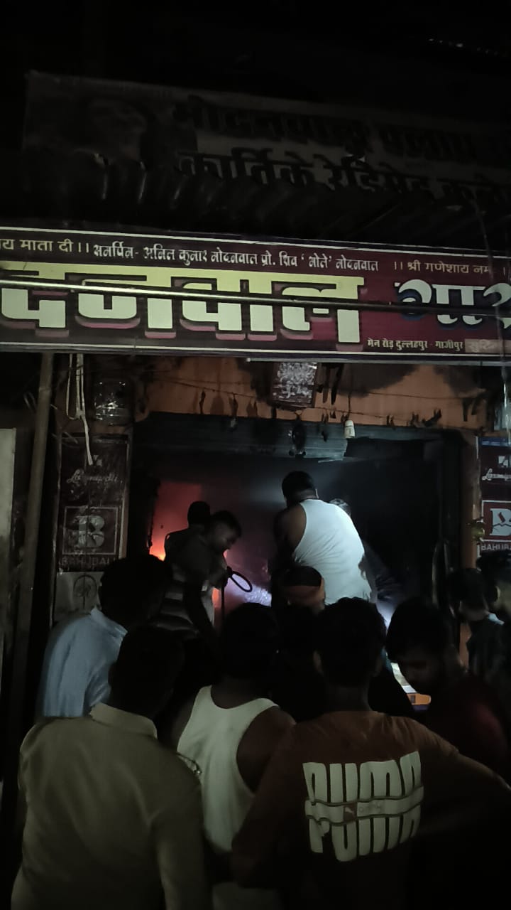 दुकान के मालिक शिव और भोले किसी रिश्तेदार के यहां गए थे। उनकी अनुपस्थिति में लोहे का शटर नहीं खुल पाया। बाजार के लोगों ने कटर से शटर काटा और पानी से आग बुझाने का प्रयास किया। फायर ब्रिगेड को भी सूचना दी गई। फायर ब्रिगेड और स्थानीय लोगों के प्रयास से 4 घंटे बाद (रविवार की भोर में) आग पर काबू पाया गया।