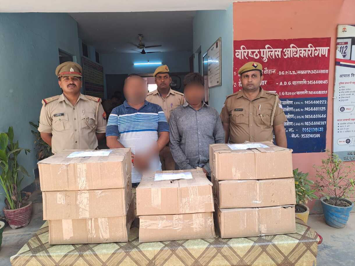 - वाराणसी| पुलिस अधीक्षक वाराणसी ग्रामीण के निर्देशन में अवैध मादक पदार्थों की बिक्री करने वाले अभियुक्त की गिरफ्तारी व बरामदगी हेतु चलाये जा रहे अभियान के क्रम में व अपर पुलिस अधीक्षक वाराणसी ग्रामीण के पर्यवेक्षण तथा क्षेत्राधिकारी बड़ागांव के कुशल नेतृत्व में थाना कपसेठी पुलिस द्वारा चेकिंग के दौरान मुखबिर की सूचना पर ग्राम इसरवार तिराहा के पास एक एकसेंट कार सवार अब्दुल कादिर पुत्र अब्बास अली निवासी ग्राम हरहुआ थाना बड़ागाँव जनपद वाराणसी व राकेश कुमार मिश्रा पुत्र शोभनाथ मिश्रा निवासी ग्राम बलरामपुर थाना बड़ागाँव जनपद वाराणसी को गिरफ्तार कर उक्त वाहन को चेक किया गया तो कब्जे से से 8 पेटी अवैध देशी शराब, 3737 अदद QR कोड स्टीकर, 3449 लेवल, 2996 ढक्कन, 01 एल्कोहलिक मीटर बरामद हुआ । उक्त गिरफ्तारी व बरामदगी के सम्बन्ध में थाना कपसेठी पुलिस द्वारा मु0अ0सं0 181/22 धारा 419,420,467,468,471,272 भादवि व 60,60(2),72 आबकारी अधिनियम पंजीकृत कर आवश्यक विधिक कार्यवाही की जा रही है।