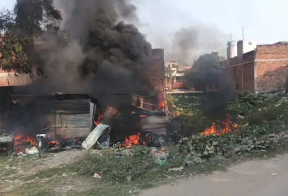 सीएनजी टंकी काटते समय धमाका, कबाड़ गोदाम की आग में जिंदा जली महिला