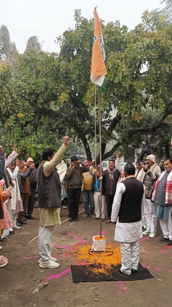 गाजीपुर। जिला कांग्रेस कमेटी एवं शहर कांग्रेस कमेटी के संयुक्त तत्वावधान में कांग्रेस पार्टी का 141वां स्थापना दिवस कैंप कार्यालय सकलेनाबाद में हर्षोल्लास के साथ मनाया गया। इस अवसर पर कांग्रेस कार्यकर्ताओं एवं नेताओं ने पार्टी का झंडारोहण कर सलामी दी। इसके उपरांत एक गोष्ठी का आयोजन किया गया, जिसमें वक्ताओं ने कांग्रेस के गौरवशाली इतिहास और वैचारिक प्रतिबद्धता पर प्रकाश डाला।