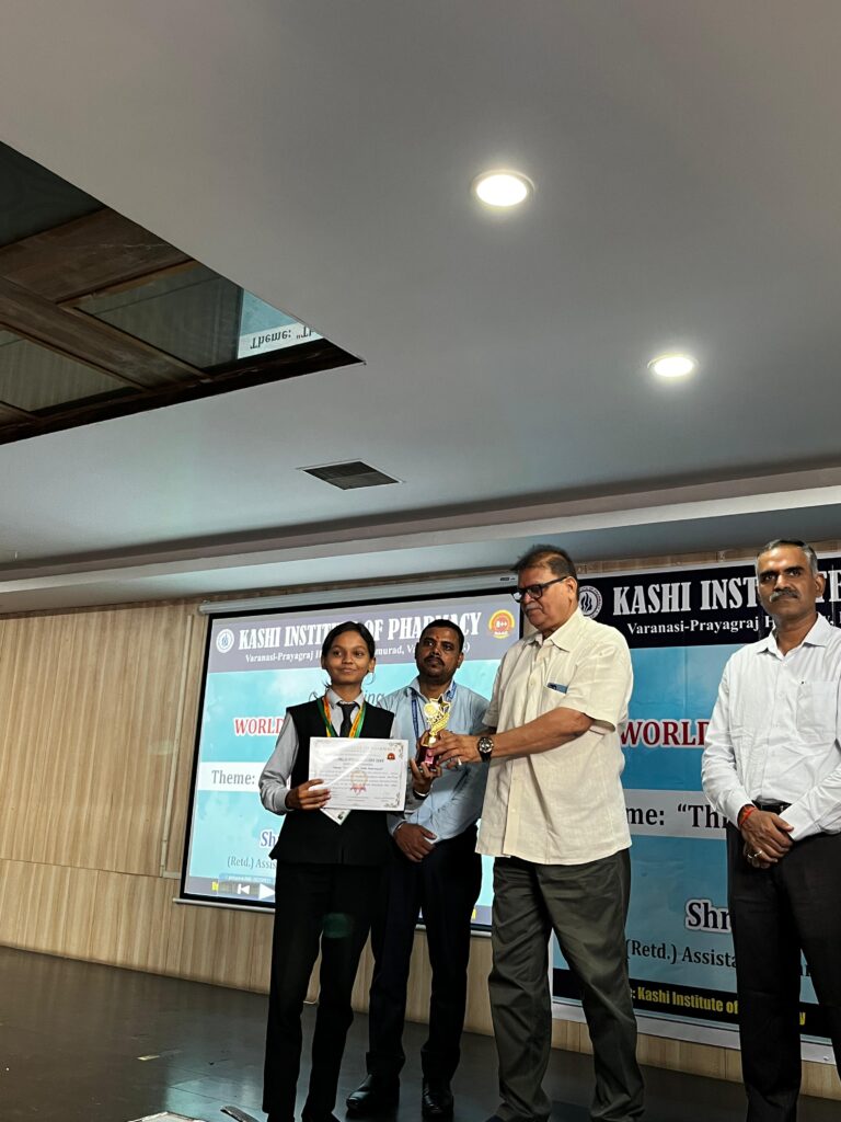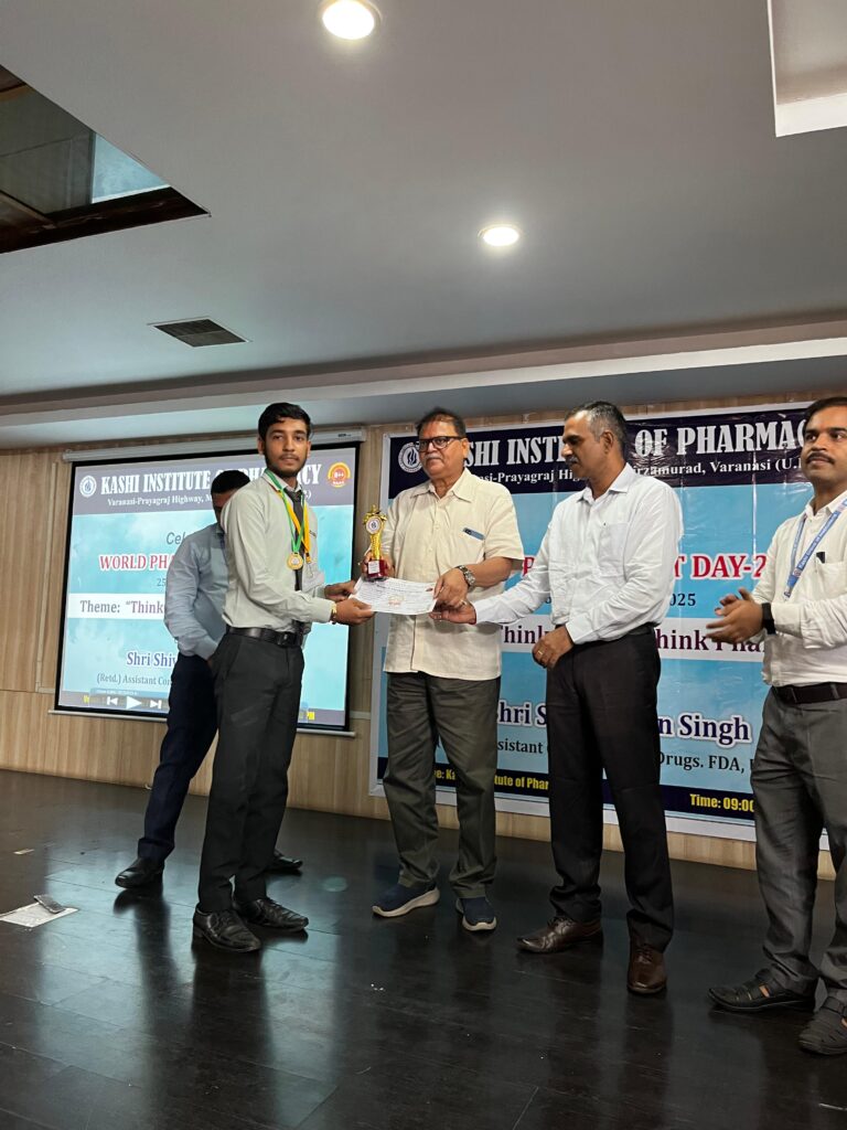 मिर्जामुराद (वाराणसी)। काशी इंस्टिट्यूट ऑफ फार्मेसी में 25 सितंबर 2025 को धूमधाम से विश्व फार्मासिस्ट दिवस मनाया गया। कार्यक्रम का शुभारंभ सरस्वती वंदना के साथ हुआ। कार्यक्रम के मुख्य अतिथि श्री शिव सरन, सेवानिवृत्त सहायक आयुक्त, ड्रग, एफडीए, उत्तर प्रदेश शासन रहे। उन्होंने विद्यार्थियों को संबोधित करते हुए फार्मासिस्ट की भूमिका और दवाओं के सुरक्षित एवं प्रभावी उपयोग पर प्रकाश डाला।