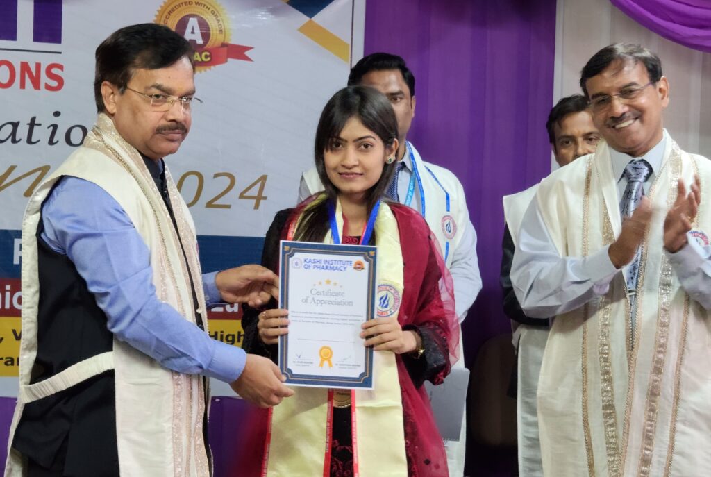 इसी प्रकार कुल 9 छात्रों को संस्थान के अध्यक्ष विपुल जैन द्वारा रजत पदक प्रदान किया गया है। पदक वितरण के उपरांत संस्थान के उपनिदेशक डॉक्टर ए के यादव द्वारा संस्थान का रिपोर्ट कार्ड प्रस्तुत किया गया तथा काशी इंस्टीट्यूट आफ फार्मेसी के निदेशक डॉ आशुतोष मिश्रा द्वारा मुख्य अतिथि के बारे में विस्तार से जानकारी दी गई। संस्थान के अध्यक्ष विपुल जैन द्वारा संस्थान के विजन एवं छात्रों के सर्वांगीण विकास हेतु विस्तृत योजना की जानकारी दी गई।