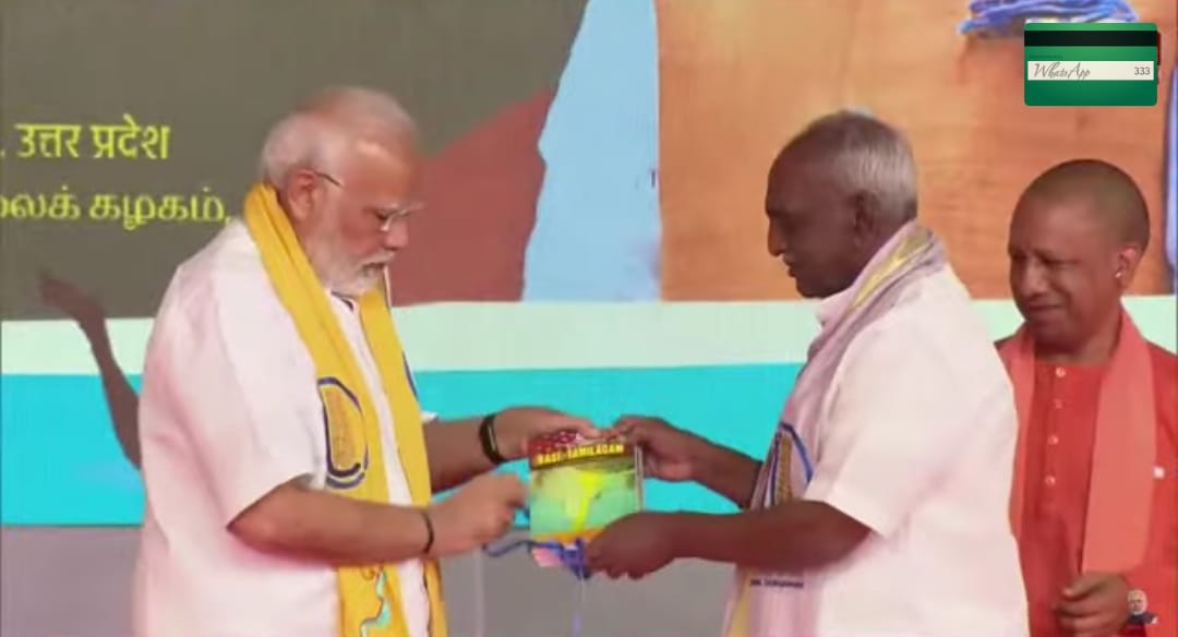 प्रधानमंत्री नरेन्द्र मोदी की उपस्थिति में भारतीय सनातन संस्कृति के दो अहम प्राचीन पौराणिक केंद्रों के मिलन के दौरान शनिवार को अनूठा आयोजन हुआ। काशी तमिल संगमम के उद्घाटन समारोह में तमिलनाडु के प्रमुख मठ मंदिर के आदिनम (महंत) को काशी की धरा पर पहली बार सम्मानित किया गया। महामना की बगिया में आयोजित भव्य समारोह में सम्मान समारोह के बाद प्रधानमंत्री मोदी भगवान शिव के ज्योर्तिलिंग काशी विश्वनाथ और रामेश्वरम के एकाकार पर आधीनम से संवाद किया।