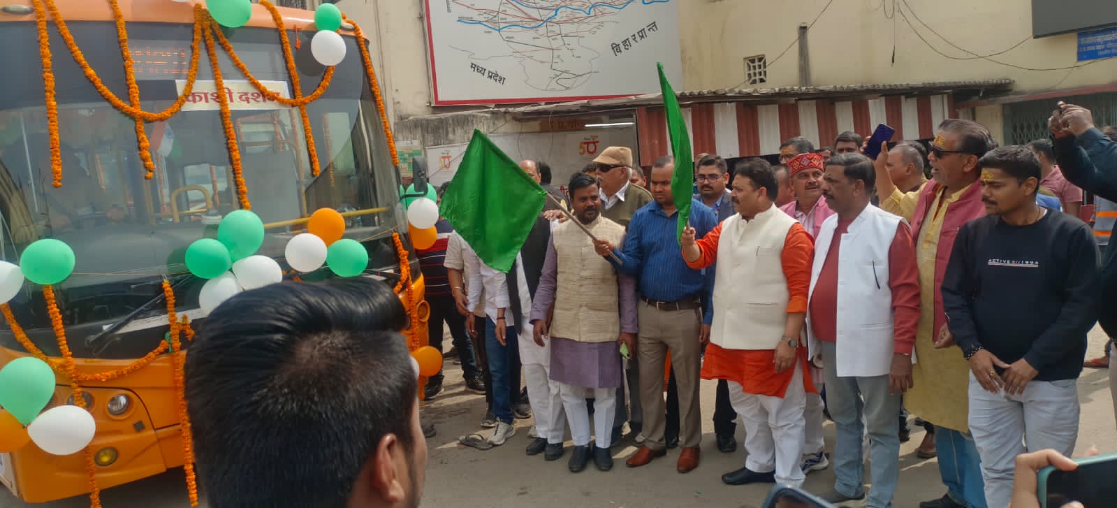 वाराणसी। काशी में पर्यटन को बढ़ावा देने के दृष्टिगत काशी दर्शन बस सेवा का आज से संचालन शुरू किया। काशी दर्शन बस सेवा वाराणसी शहर के प्रमुख मन्दिरों बाबा विश्वनाथ मन्दिर, बाबा कालभैरव, नमो घाट, संकटमोचन मन्दिर, तुलसीमानस मन्दिर व दुर्गा जी मन्दिर के दर्शन हेतु एक वातानुकूलित इलेक्ट्रिक बस सेवा का काशी दर्शन के नाम से संचालन हेतु रविवार को रविन्द्र जायसवाल, राज्य मंत्री (स्वतन्त्र प्रभार), उ० प्र० शासन द्वारा चौधरी चरण सिंह, बस स्टेशन कैण्ट से हरी झण्डी दिखाकर रवाना किया गया।