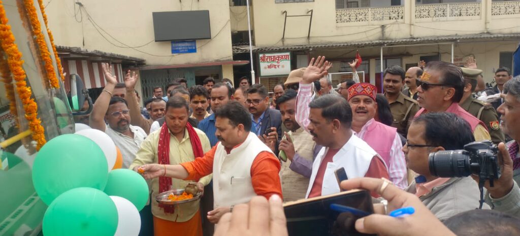 स्टाम्प राज्य मंत्री रवीन्द्र जायसवाल ने कैंट स्टेशन से हरी झंडी दिखाकर रवाना किया