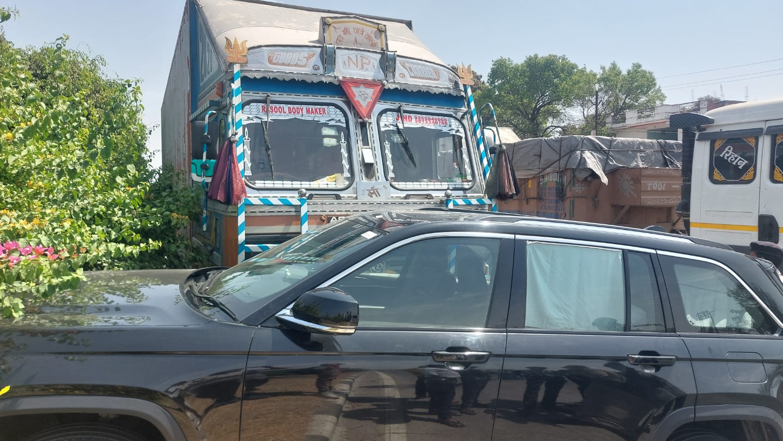 टक्कर इतनी तेज थी कि कार ट्रक के अगले हिस्से में फंसकर करीब 10 मीटर तक घिसटती चली गई। हालांकि हादसे के समय कार में सवार सभी लोग पूरी तरह सुरक्षित बच गए। दुर्घटना में कार का अगला हिस्सा क्षतिग्रस्त हो गया।