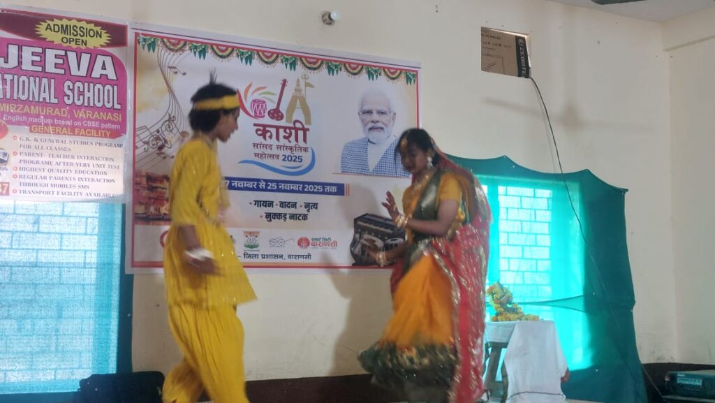 वाराणसी। जिले के खालिसपुर (मिर्जामुराद) स्थित जीवा इंटरनेशनल स्कूल में काशी सांसद सांस्कृतिक महोत्सव के दूसरे दिन नुक्कड़ नाटक और नृत्य प्रतियोगिता में छात्रों ने शानदार प्रस्तुतियों से दर्शकों को मंत्रमुग्ध कर दिया।