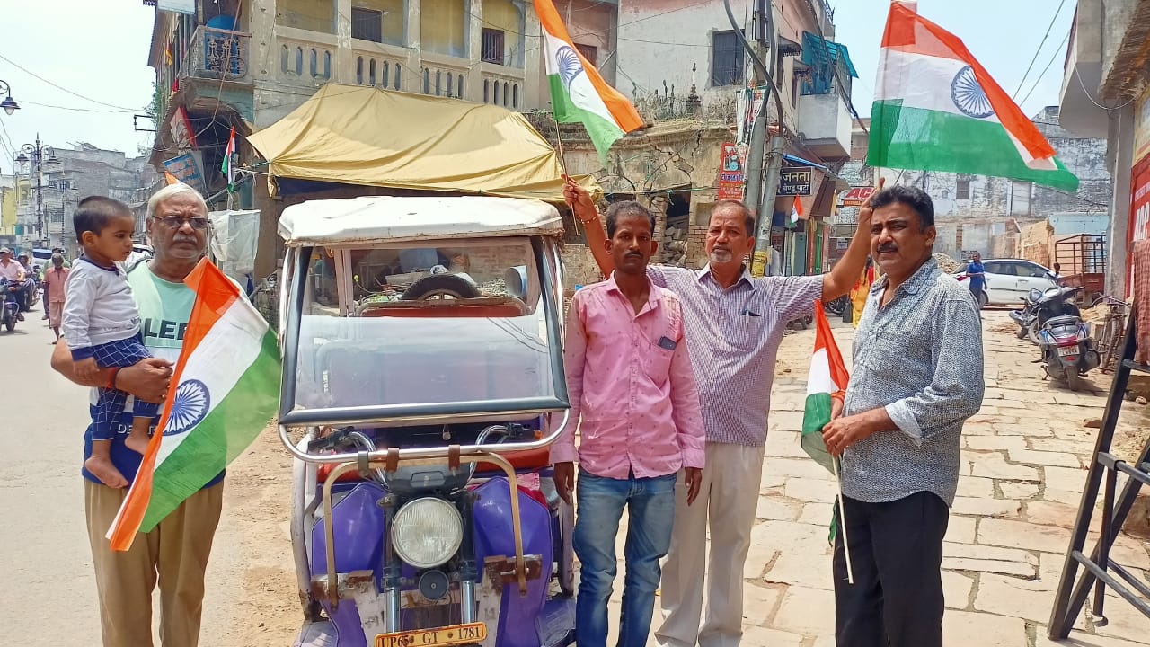 काशी साहू समाज द्वारा आजादी के अमृत महोत्सव के अवसर पर लोगों में वितरित किया गया राष्ट्रीय ध्वज