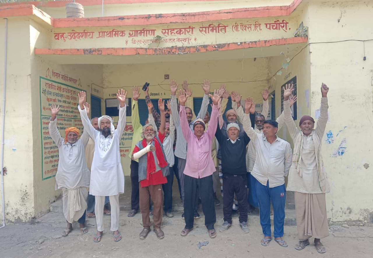 गोरखपुर। जिले के सहजनवां ब्लाक के दक्षिणांचल में स्थित साधन सहकारी समिति पचौरी पर गोदाम में यूरिया खाद रहते हुए भी किसानों ने सचिव पर आरोप लगाया कि यूरिया खाद देने के लिए हम लोगों से लाइन लगवा कर अंगूठा लगवा लिया गया लेकिन खाद नहीं दिया जा रहा है, जिससे आक्रोशित होकर शनिवार को साधन समिति के सामने खड़ा हो कर सचिव की मनमानी के खिलाफ विरोध प्रदर्शन किया। किसानों का कहना है कि हम लोग अपने रवि की फसल गेंहू, सरसों,आलू के फसलों की सिंचाई कर दिया गया है, उसमें यूरिया खाद डालने की सख्त जरूरत है। गोदाम में खाद रहते हुए सचिव द्वारा हम किसानों को खाद नहीं दिया जा रहा है।