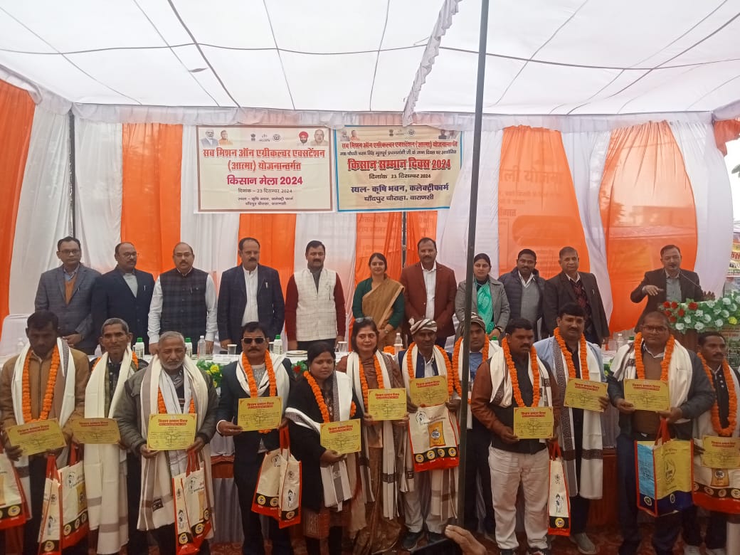वाराणसी। कृषि भवन, चांदपुर कलेक्ट्री फार्म में किसान दिवस का आयोजन भव्य रूप से किया गया। मुख्य अतिथि जिला पंचायत अध्यक्ष पूनम मौर्य की अध्यक्षता में आयोजित इस कार्यक्रम में जिले के किसान और कृषि विभाग के वरिष्ठ अधिकारी शामिल हुए।