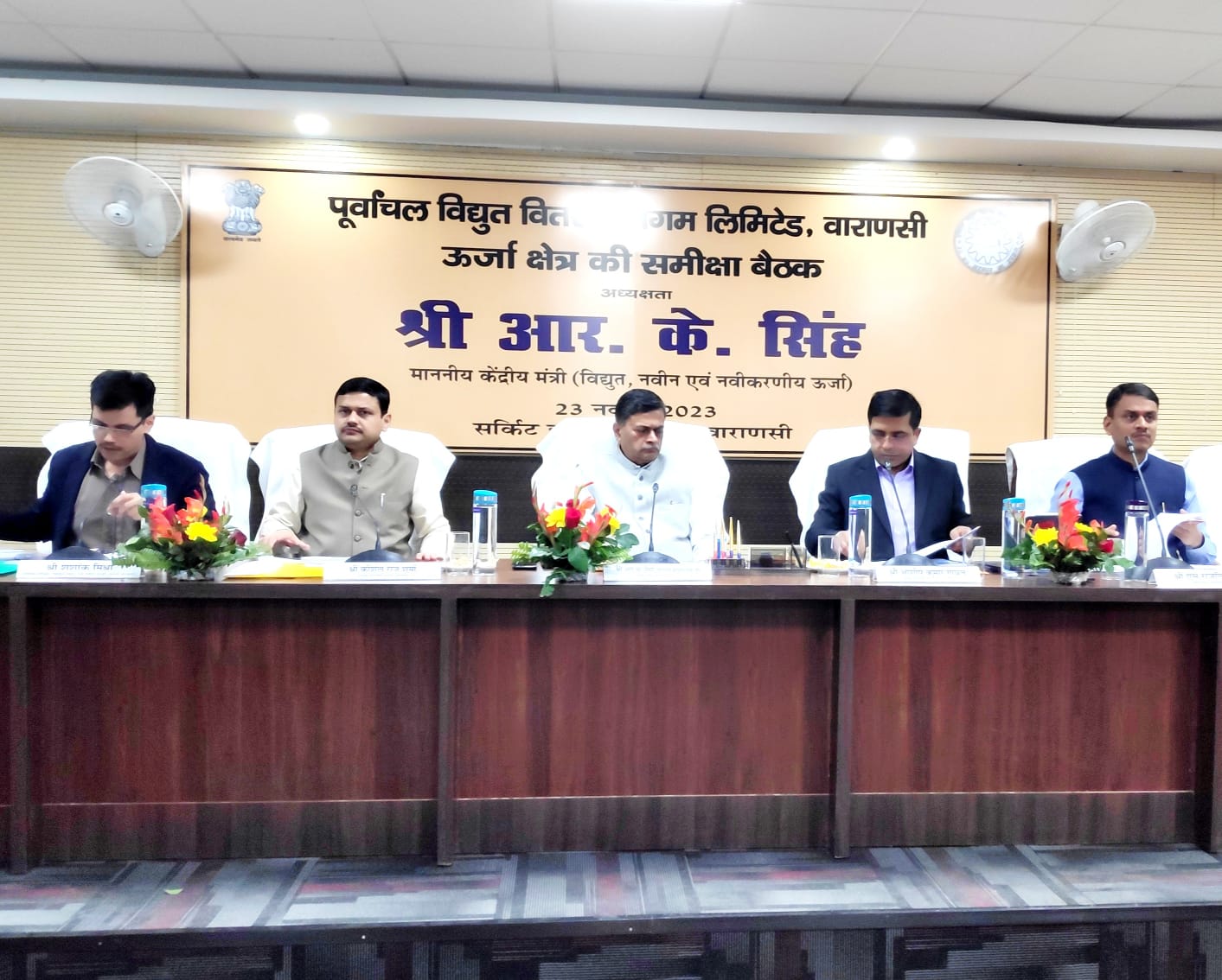 वाराणसी। सर्किट हाउस सभागार में केंद्रीय मंत्री (विद्युत, नवीन एवं नवीकरणीय ऊर्जा) आर के सिंह की अध्यक्षता में ऊर्जा क्षेत्र की समीक्षा बैठक आयोजित हुई जिसमें उन्होंने ऊर्जा क्षेत्र से जुड़े विभिन्न विभागों को आवश्यक दिशा-निर्देश जारी किए। उन्होंने सभी कार्यों हेतु ओपन टेन्डर की प्रक्रिया अपनाने को कहा तथा रेट को पड़ोसी राज्यों के हिसाब से मैच कराते हुए अपनाने का निर्देश दिया। उन्होंने पर्यवेक्षण एवं निरीक्षण तंत्र को बदलने को कहा तथा बड़े अधिकारियों को शेड्यूल बना कर चेकिंग की कार्रवाई करने हेतु भी निर्देशित किया।