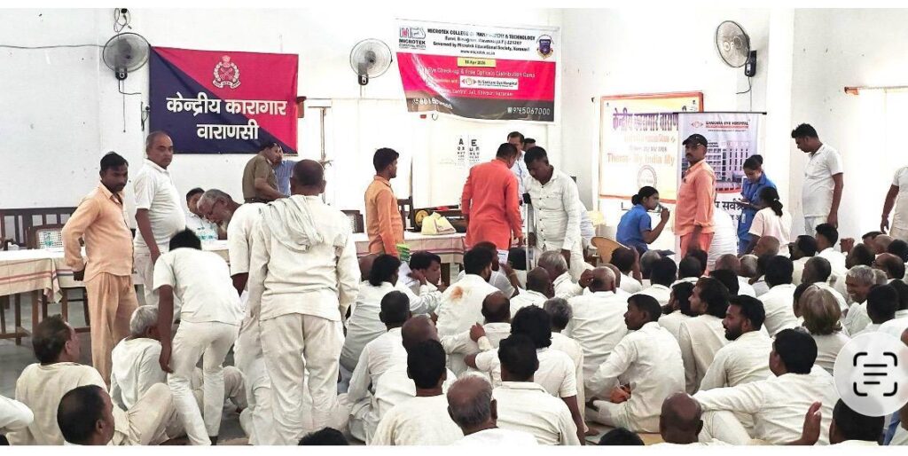 वाराणसी। केन्द्रीय कारागार वाराणसी में वरिष्ठ जेल अधीक्षक राधाकृष्ण मिश्र के प्रयासों से गुरुवार को एक भव्य निःशुल्क नेत्र जांच शिविर का आयोजन किया गया। इस शिविर में माइक्रोटेक एजुकेशनल सोसाइटी मलदहिया एवं आर.जे. शंकरा आई हास्पिटल, माधोपुर की टीम ने कारागार अधिकारियों, कर्मचारियों एवं कैदियों के लिए आंखों की विधिवत जांच और परीक्षण किया।