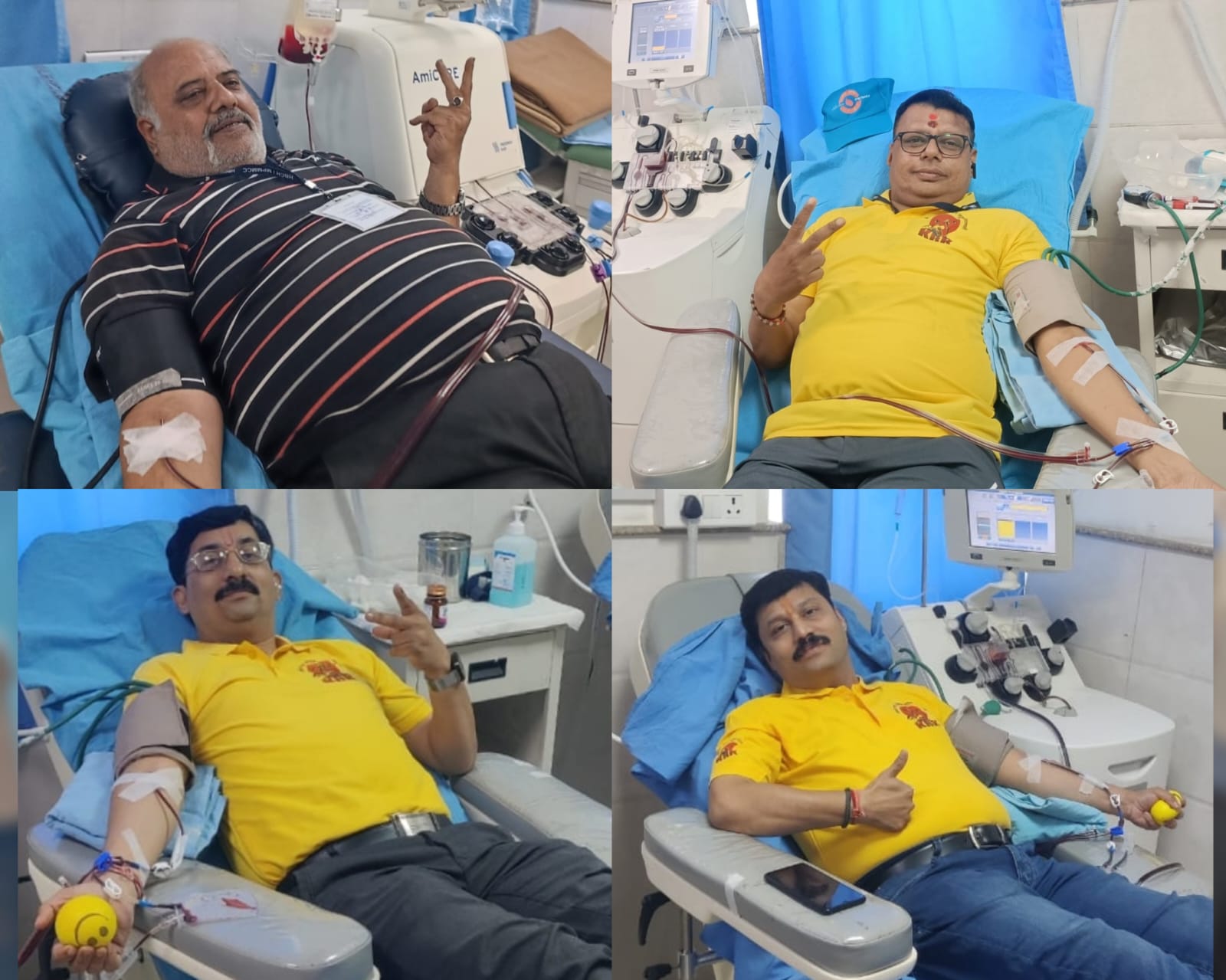 वाराणसी। नगर निकाय चुनाव के मतदान में भागीदारी के साथ साथ रक्तदान जीवन दान के लिए हमेशा तत्पर रहने वाले काशी रक्तदान नेत्रदान कुटुम्ब के पदाधिकारियों में आज लहरतारा स्थित होमी भाभा कैंसर अस्पताल में प्रदीप इसरानी ने 169 वां, अध्यक्ष नीरज पारिख ने 56 वां, फाउंडर सचिव राजेश गुप्ता ने 71 वां तथा सह सचिव नमित पारिख ने 72 वां डोनेशन प्लेटलेट्स के रूप में किया। बताते चले कि काशी ने जबसे प्रधानमंत्री दिया है तब से हर लोकतंत्र के पर्व पर के आर के पिछले 9 सालों से मुहिम के तहत पहले मतदान फिर जलपान तब रक्तदान करती चली आ रही है। और आगे भी अनवरत जारी रहेगा।