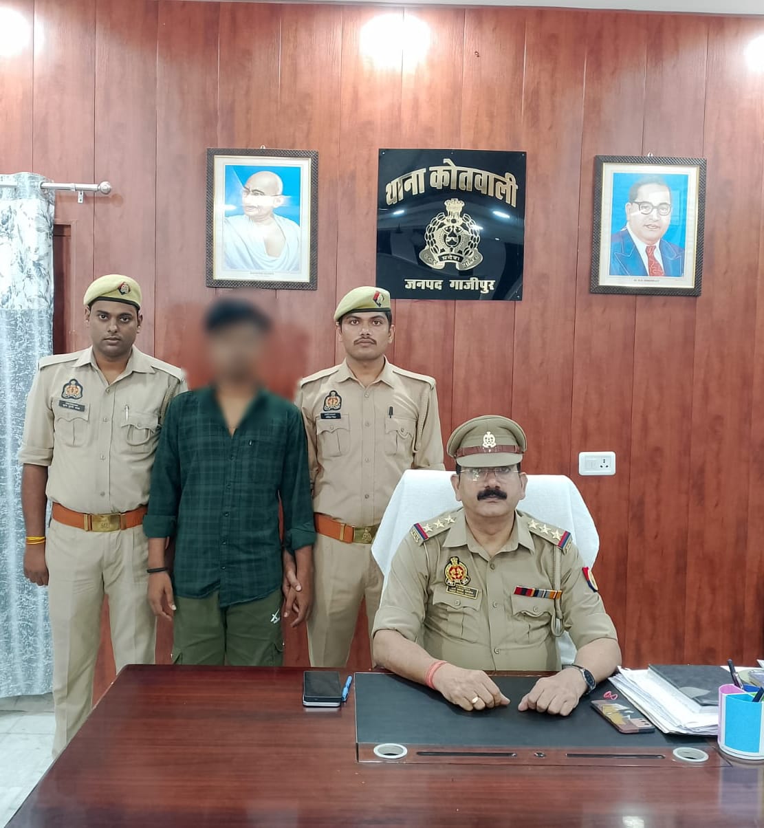 गाजीपुर। जनपद में अपराध एवं अपराधियों के विरुद्ध चलाए जा रहे अभियान के तहत थाना कोतवाली पुलिस ने रविवार को एक अभियुक्त को गिरफ्तार किया है। गिरफ्तार अभियुक्त का नाम शिवम चौरसिया उर्फ मोनू पुत्र कमलेश चौरसिया उर्फ लखेदू, निवासी औरंगाबाद, थाना कोतवाली, गाजीपुर, उम्र लगभग 21 वर्ष बताया गया है।