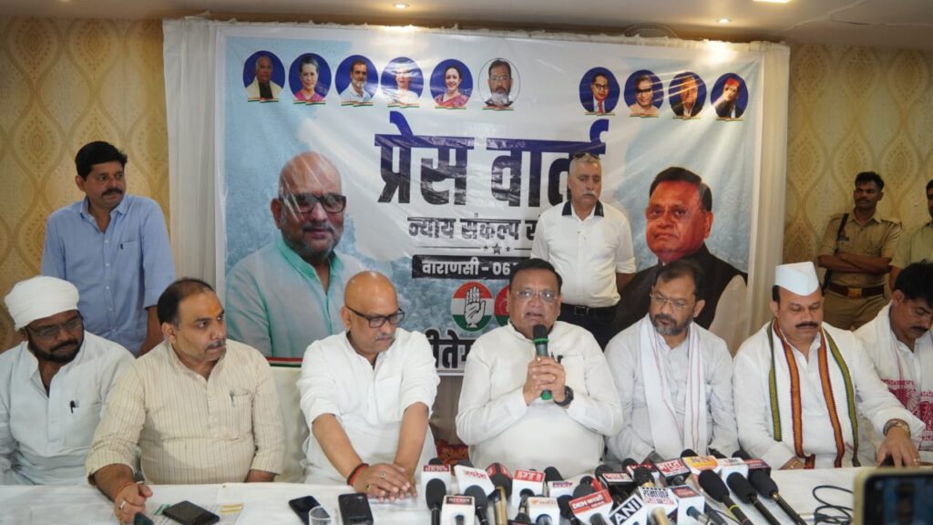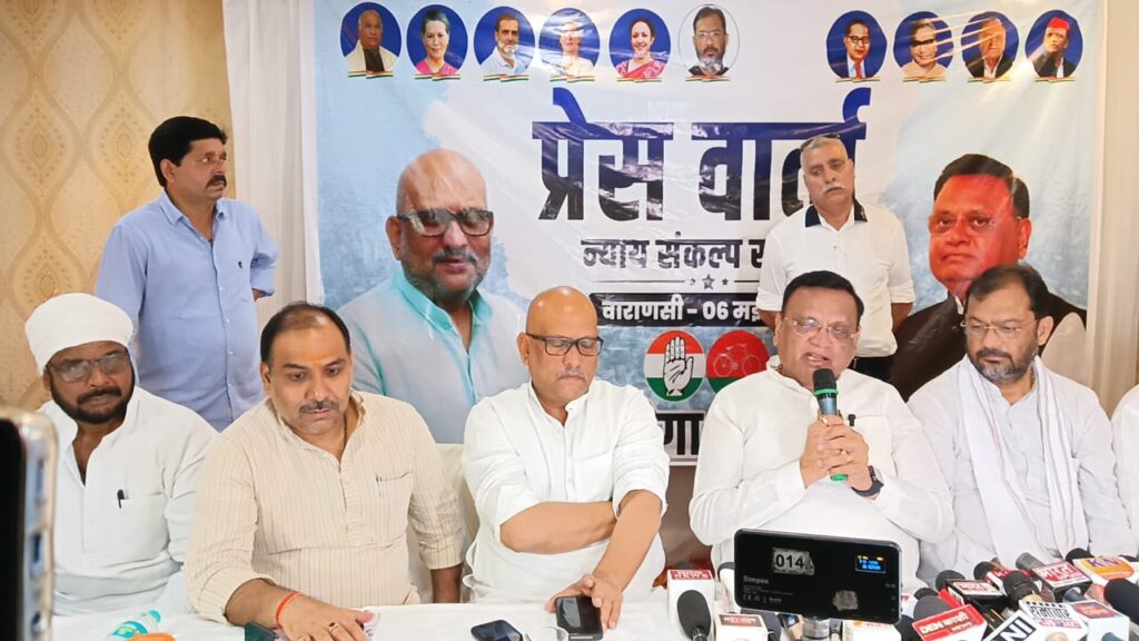 पत्रकार वार्ता में कांग्रेस प्रदेश अध्यक्ष और वाराणसी से इडिया गठबंधन के प्रत्याशी अजय राय, राष्ट्रीय सचिव राजेश तिवारी, प्रदेश कोषाध्यक्ष शिव पाण्डेय, प्रयाग जोन मीडिया कोआर्डिनेटर प्रवक्ता संजीव सिंह, महानगर अध्यक्ष राघवेंद्र चौबे, जिलाध्यक्ष राजेश्वर सिंह पटेल, प्रदेश सचिव फसाहत हुसैन बाबू, पंकज सोनकर, चन्द्र प्रकाश, विकास कौण्डिल्य आदि उपस्थित रहें।