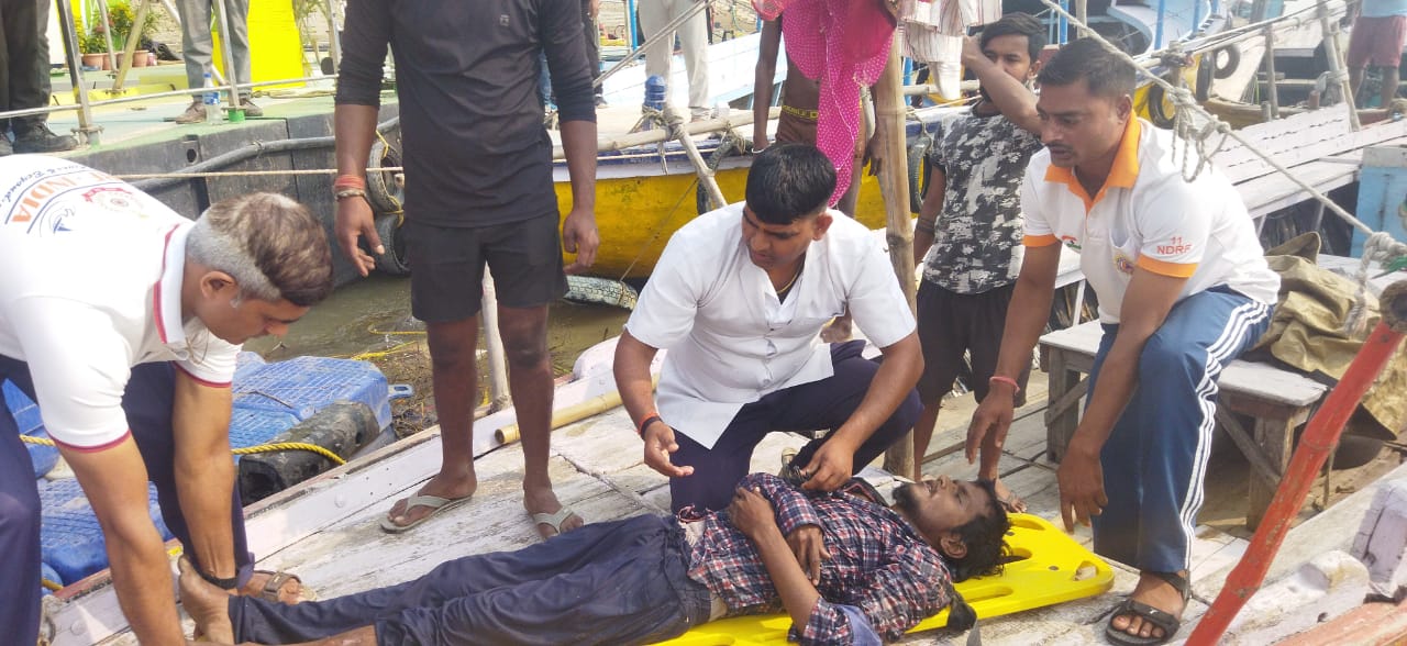 गंगा नदी में डूबते युवक को एनडीआरएफ और स्थानीय मल्लाहों ने बचाया