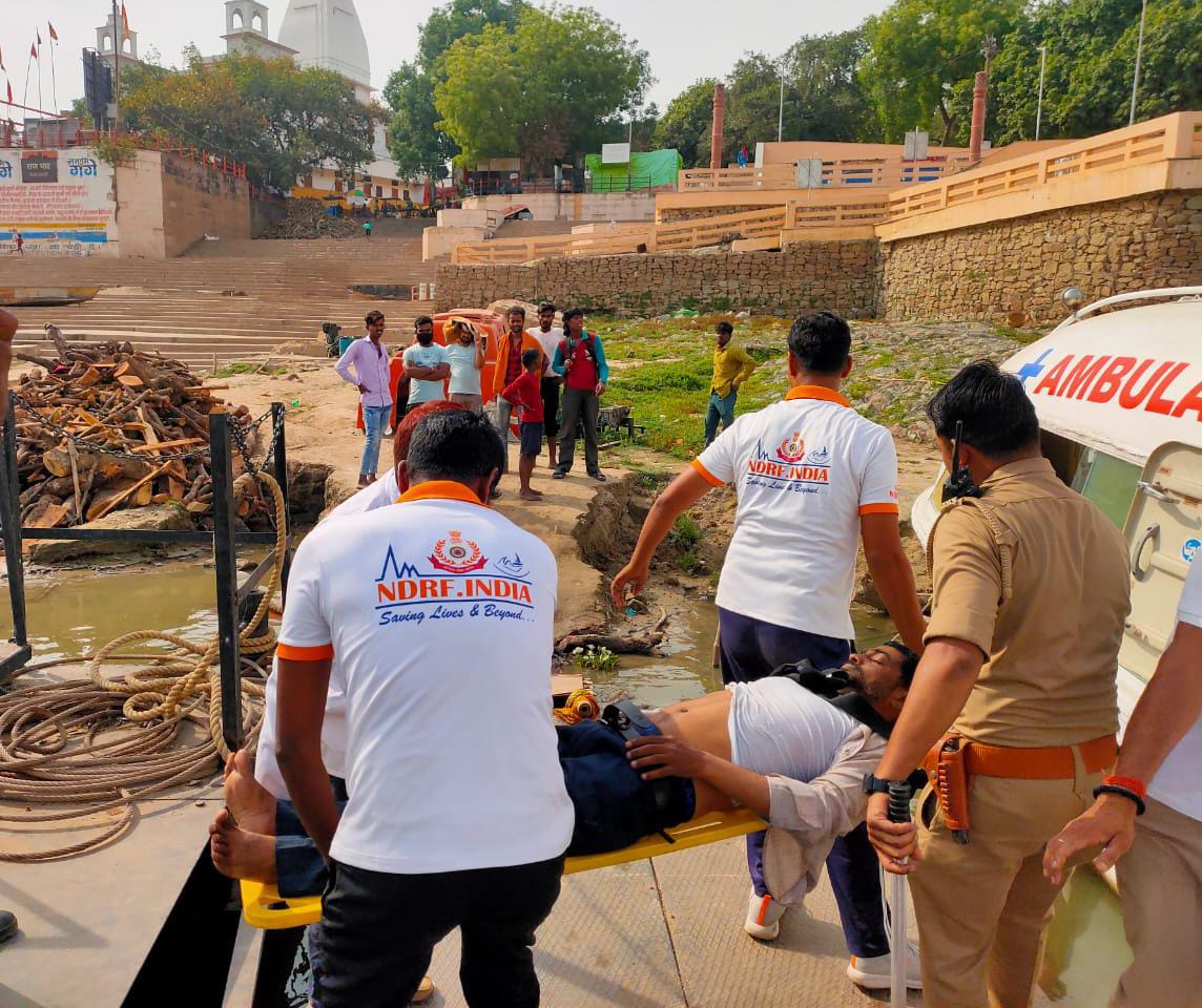 गंगा नदी में डूबते व्यक्ति को एनडीआरएफ ने स्थानीय लोगों की मदद से बचाया