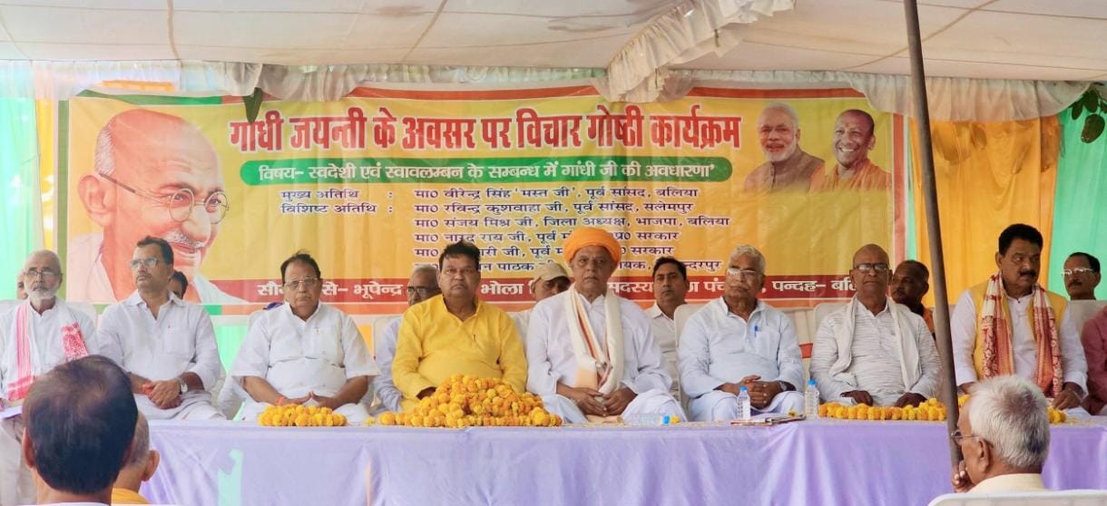 सिकंदरपुर (बलिया)। स्थानीय जूनियर हाईस्कूल प्रांगण में राष्ट्रपिता महात्मा गांधी और पूर्व प्रधानमंत्री लाल बहादुर शास्त्री की जयंती पर भव्य विचार गोष्ठी का आयोजन किया गया। बड़ी संख्या में जनप्रतिनिधि, शिक्षाविद् और स्थानीय लोग उपस्थित रहे। मुख्य अतिथि के रूप में पूर्व सांसद वीरेंद्र सिंह मस्त और सलमेपुर के पूर्व सांसद रविंद्र कुशवाहा उपस्थित रहे। कार्यक्रम की शुरुआत गांधीजी और शास्त्रीजी के चित्र पर पुष्प अर्पित कर श्रद्धांजलि देने से हुई।