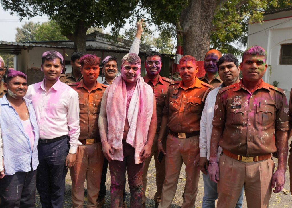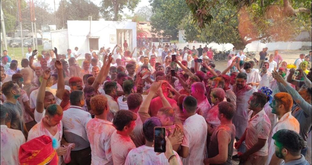 गाजीपुर पुलिस लाइन में अबीर-गुलाल के साथ मनाया गया होली मिलन समारोह