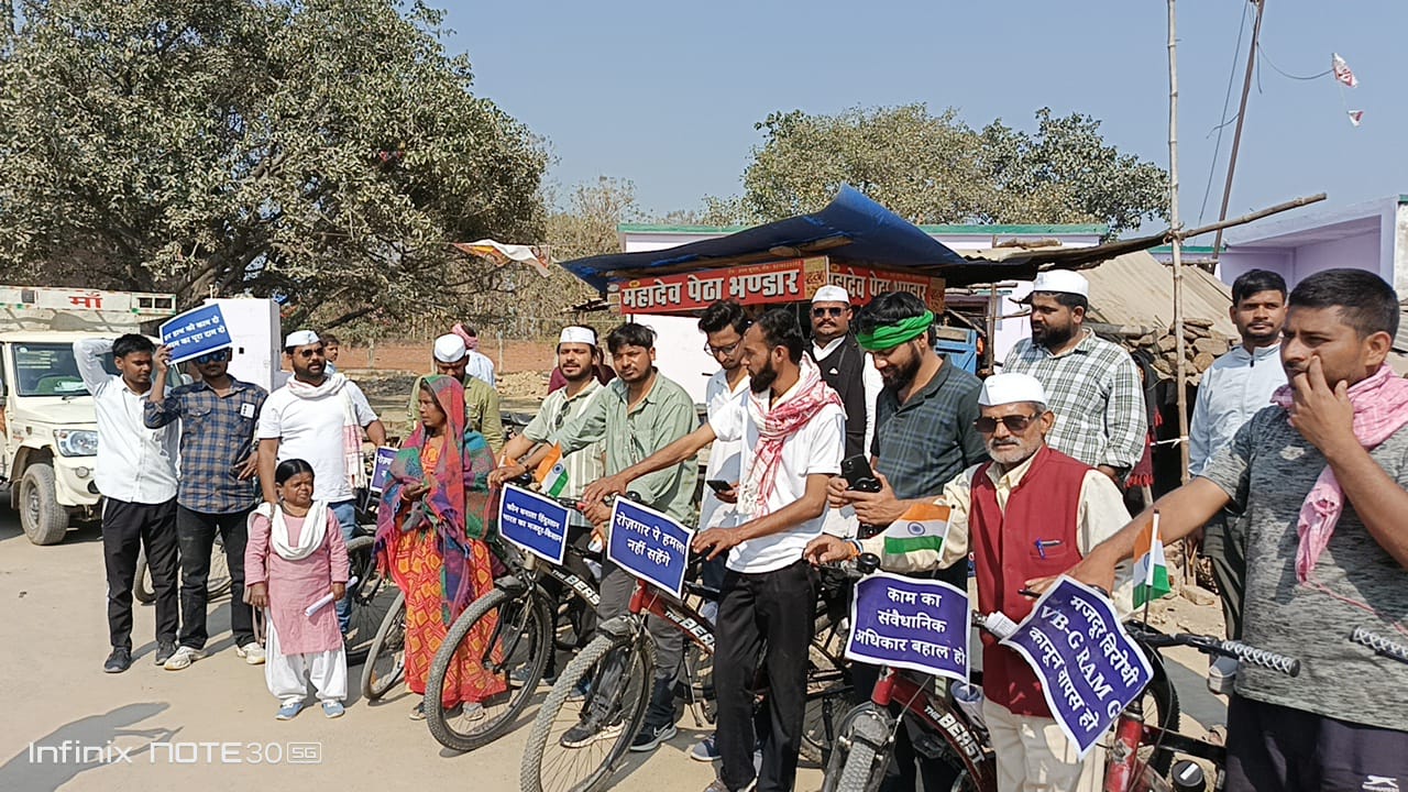 गाजीपुर (जयदेश)। 17 जनवरी से 17 फरवरी तक चल रही “मनरेगा बचाओ पहुंची गाजीपुर जिले में साइकिल यात्रा” आज एक सशक्त जनआंदोलन का रूप ले चुकी है। यह ऐतिहासिक यात्रा चौरी-चौरा की धरती से प्रारंभ हुई है और विभिन्न जिलों, कस्बों एवं प्रांतों से गुजरते हुए वाराणसी में जाकर समाप्त होगी। इस यात्रा का उद्देश्य मनरेगा के नाम और उसके ढांचे में किए जा रहे बदलावों के विरोध में आवाज उठाना तथा मजदूरों के अधिकारों की रक्षा करना है।