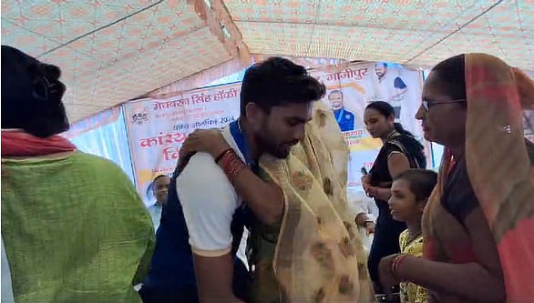 पेरिस ओलंपिक 2024 में हॉकी में कांस्य मेडल जीतकर अपने घर करमपुर (गाजीपुर) लौटे भारतीय हॉकी टीम के खिलाड़ी राजकुमार पाल का जिले में जोरदार स्वागत हुआ। करमपुर स्टेडियम पहुंचते ही उन्होंने अपनी मां मनराजी देवी का पैर छूकर आशीर्वाद लिया। इसके बाद मेडल मां के गले में पहना दिया। गले मिलकर मां-बेटे दोनों भावुक हो गए। फिर मां के साथ फोटो सेशन कराया।