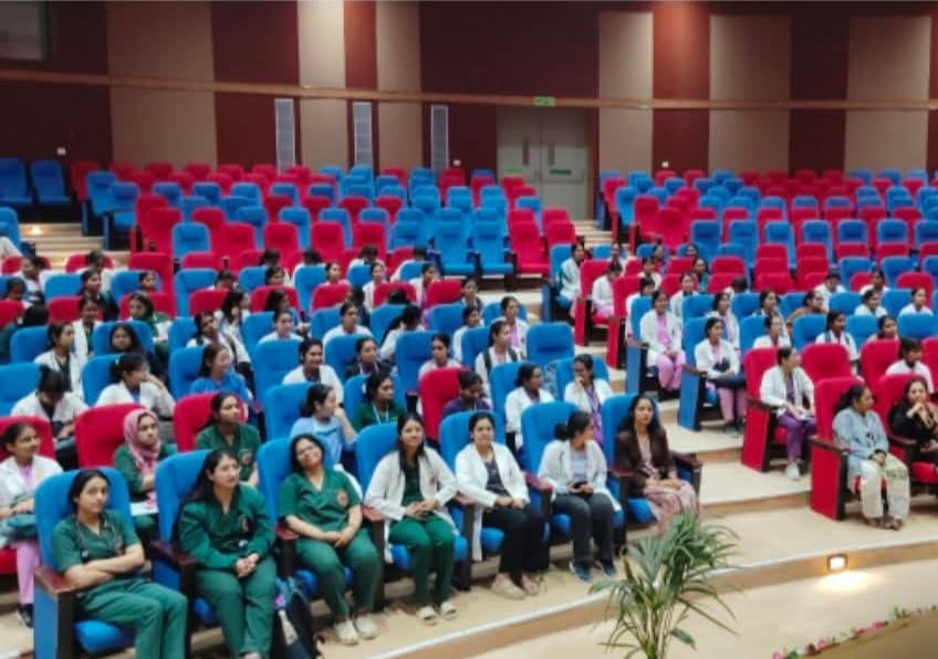 गोरखपुर। एम्स में आज महिला संवेदनशीलता एवं सुरक्षा विषयक एक जागरूकता सत्र का आयोजन किया गया। इस कार्यक्रम की अध्यक्षता कार्यकारी निदेशक डॉ. विभा दत्ता ने की, जिसमें एमबीबीएस की छात्राओं, नर्सिंग छात्राओं तथा नर्सिंग अधिकारियों ने सहभागिता की।