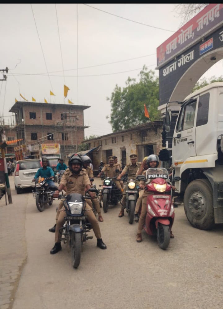 रैली थाना गोला परिसर से प्रारंभ होकर बेवरी चौराहा, कचहरी चौराहा, चंद चौराहा, गोला कस्बा होते हुए सराय चौक आदि स्थानों से गुजरते हुए पुनः थाना परिसर में समाप्त हुई। इस दौरान मिशन शक्ति की प्रभारी प्रियंका मौर्या, दरोगा राकेश सिंह, अजीत कुमार, राजेन्द्र सिंह, आशीष यादव, आनंद कुमार, राममुकुंद, कां अशोक चौधरी, शिवकुमार, अमित यादव, मृत्युंजय सिंह, मो. सद्दाम सहित स्टांप के लोग उपस्थित रहे।